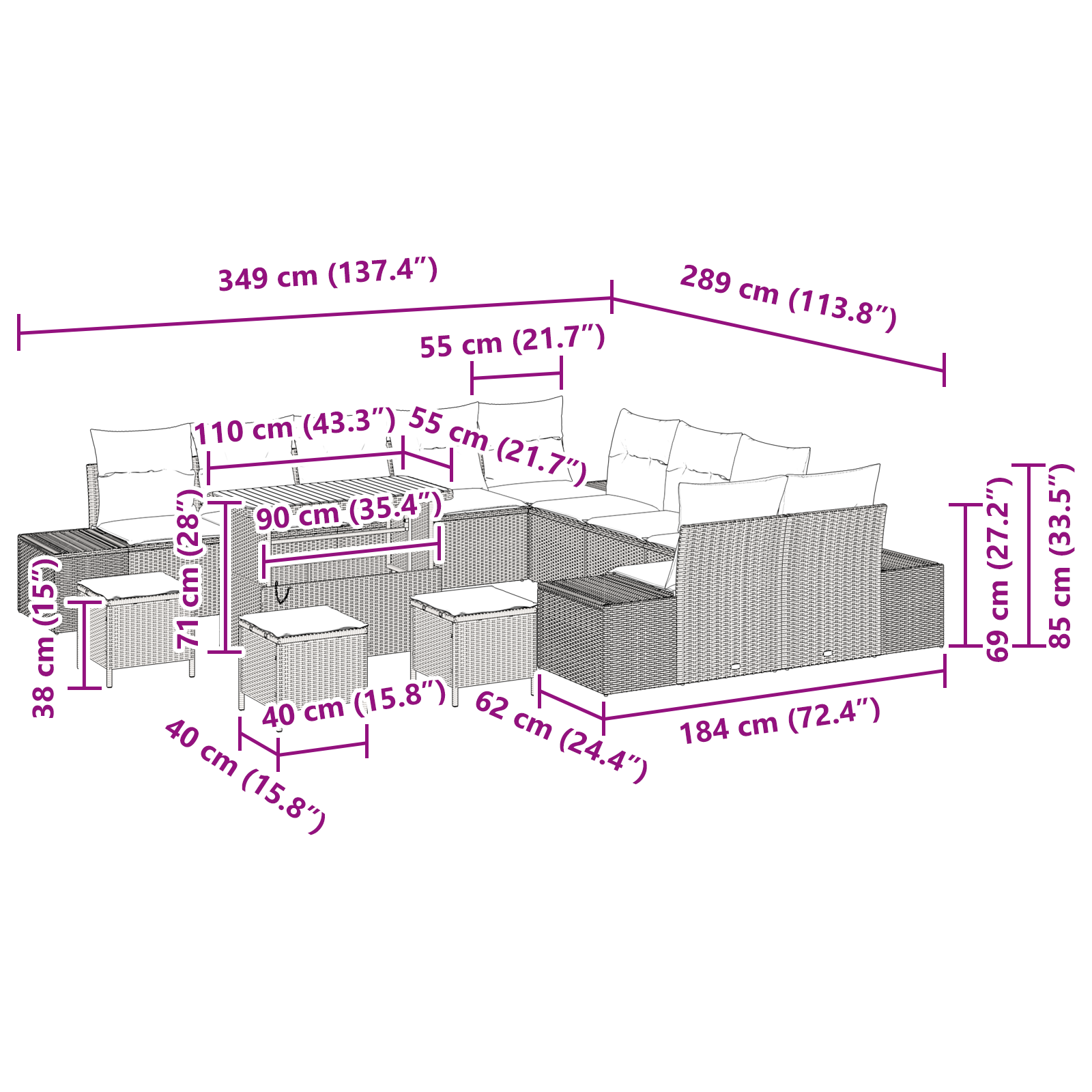 Sada zahradních pohovek s polštářem 14 pcs Béžová Poly ratan