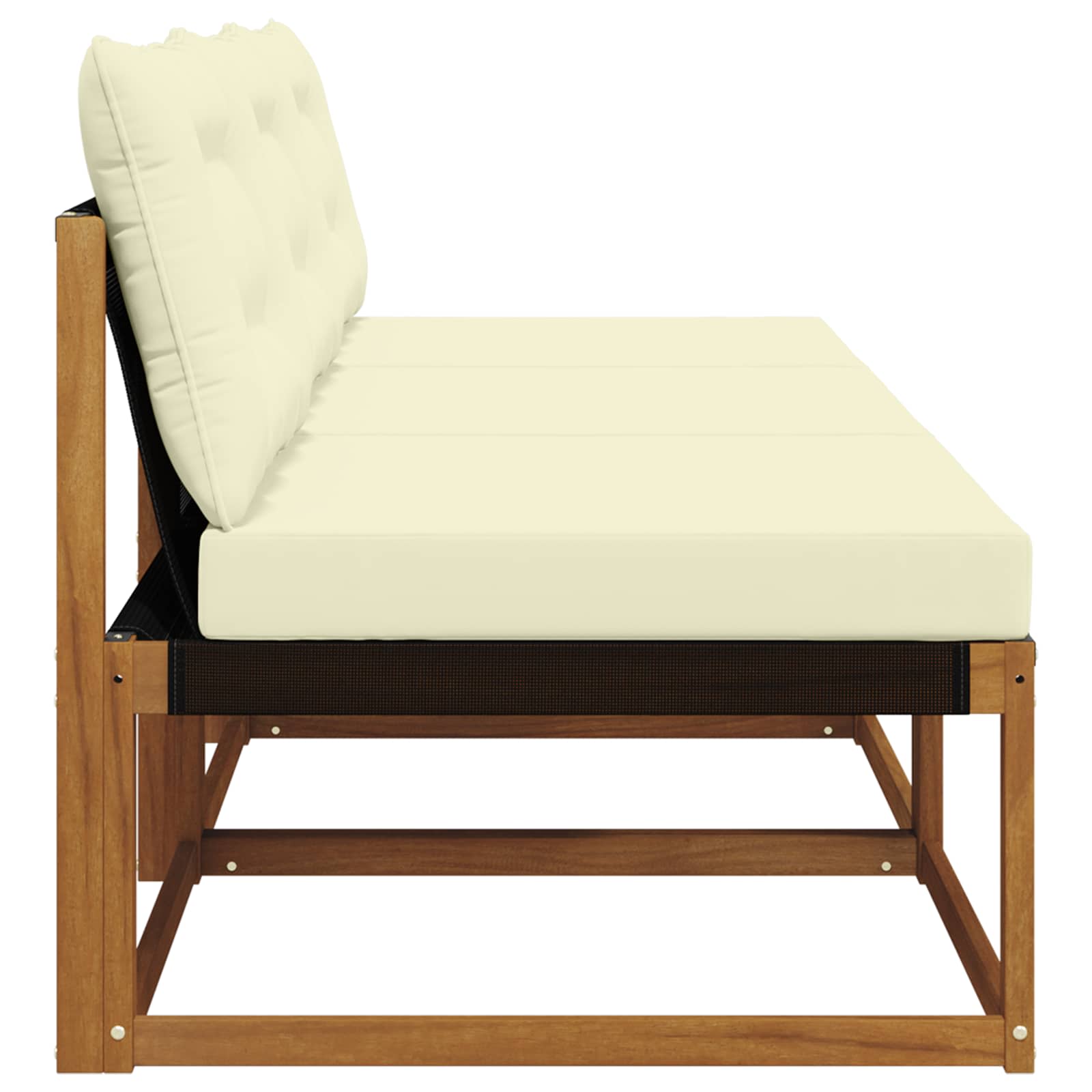 • Rám z masivního akáciového dřeva Tento rám, vyrobený z pevného akáciového dřeva, je známý svojí odolností vůči povětrnostním podmínkám, takže pohovka je stabilní a dlouho vydrží. Přirozený odstín dřeva se skvěle hodí k venkovnímu dekoru, což z něj dělá jak praktickou, tak stylovou volbu pro váš balkon nebo terasu.
