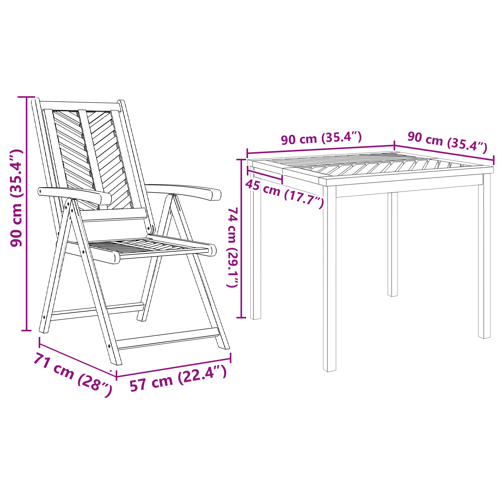 Zahradní jídelní sada má moderní vzhled, který je ideální pro venkovní relaxaci. S elegantním stylem a funkční estetikou doplňuje každou zahradu krásou a užitečnými prvky. Perfektní pro odpočinek na vaší zahradě nebo terase, sada se vyznačuje příjemným hnědým odstínem na opěradlech, nohou a povrchu, vše z odolného masivního akáciového dřeva. Tento stylový komplet zvýší vaše venkovní sezení, zaručí trvalé dojmy a nabídne útulné útočiště v přírodě.