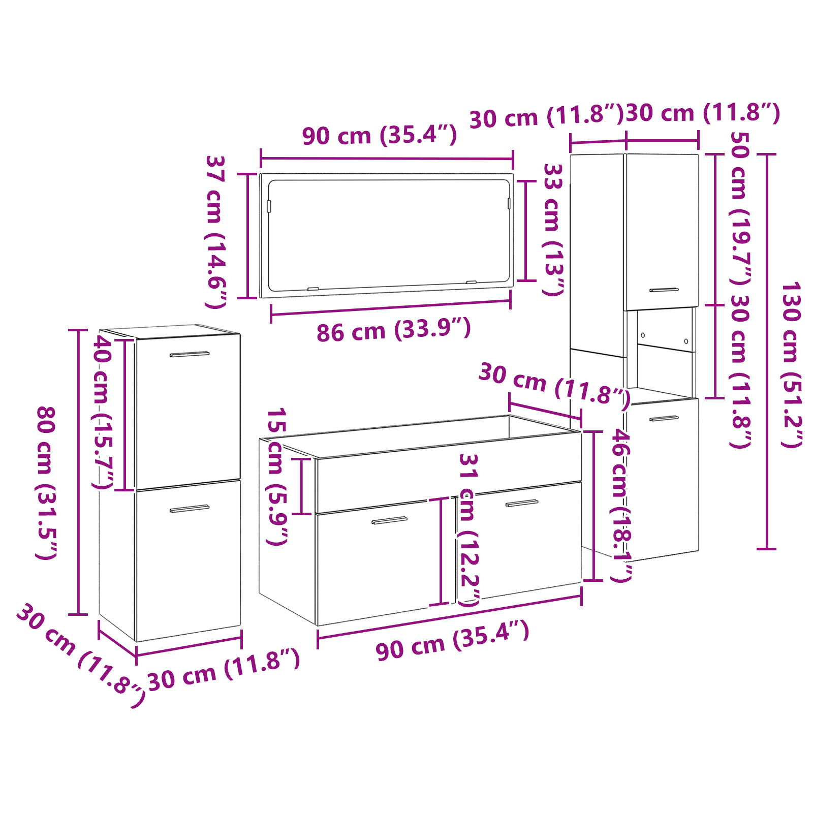 Sada koupelnového nábytku 4 pcs Černý dub kompozitní dřevo