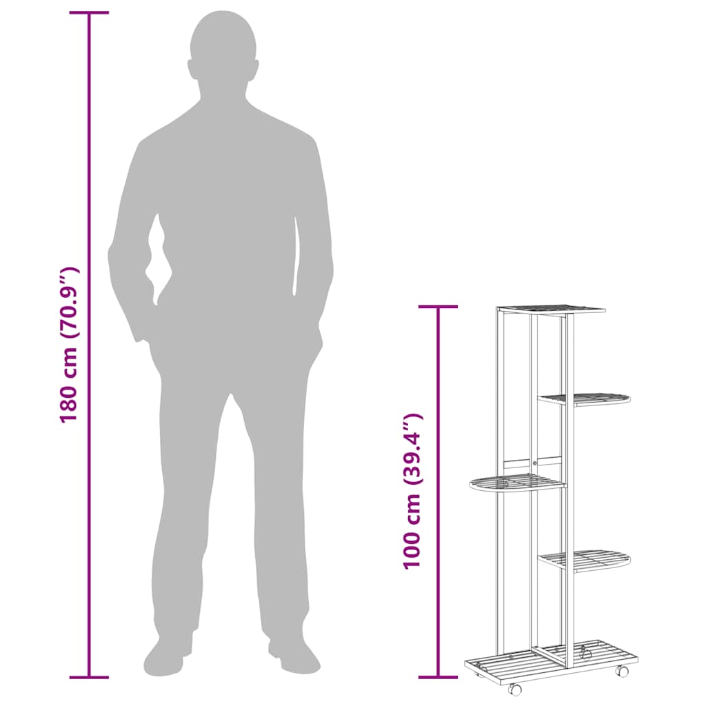 5patrový stojan na květiny s kolečky 44x23x100 cm černý železo