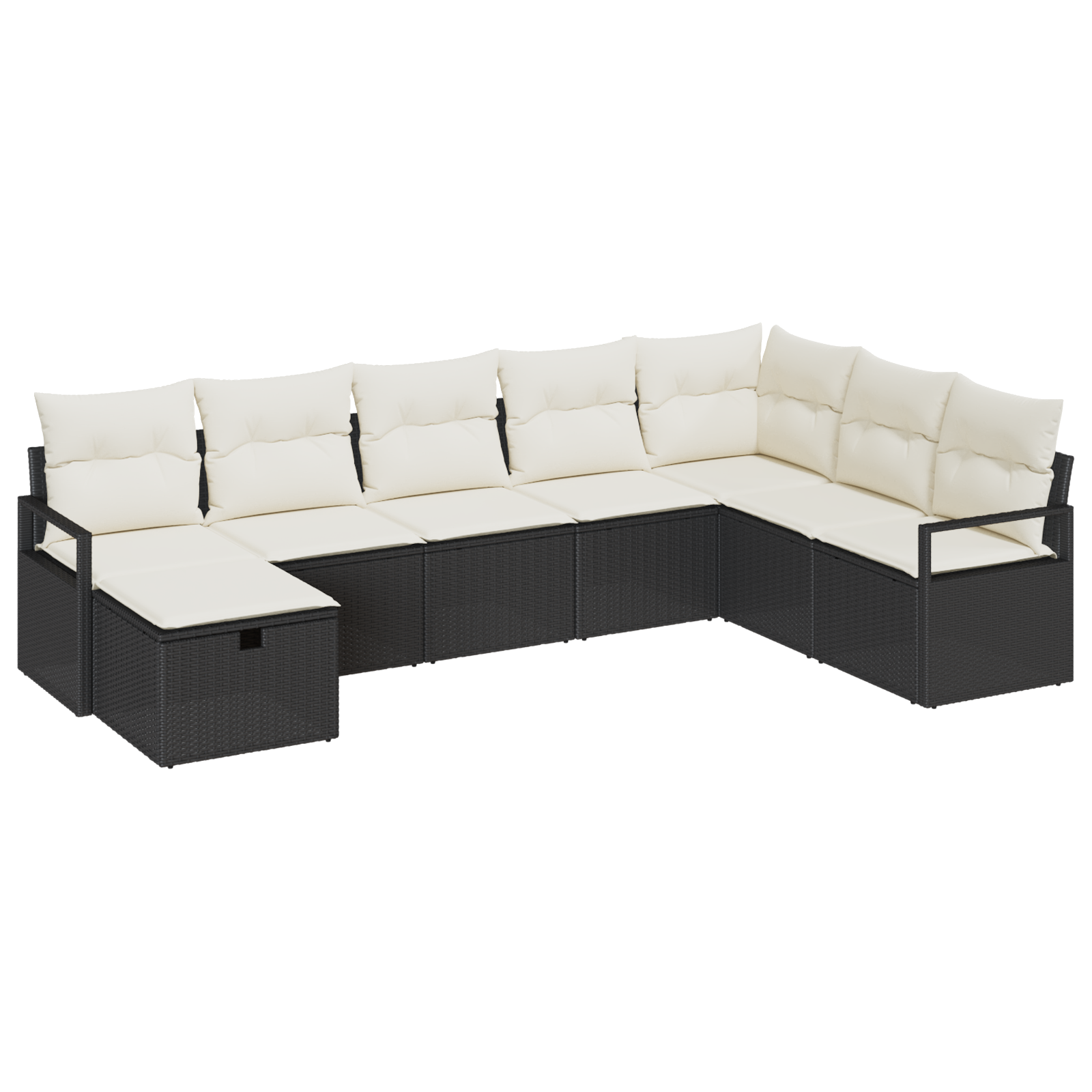 Set pohovek s polštářem 8 pcs Černá a krémová polyratan