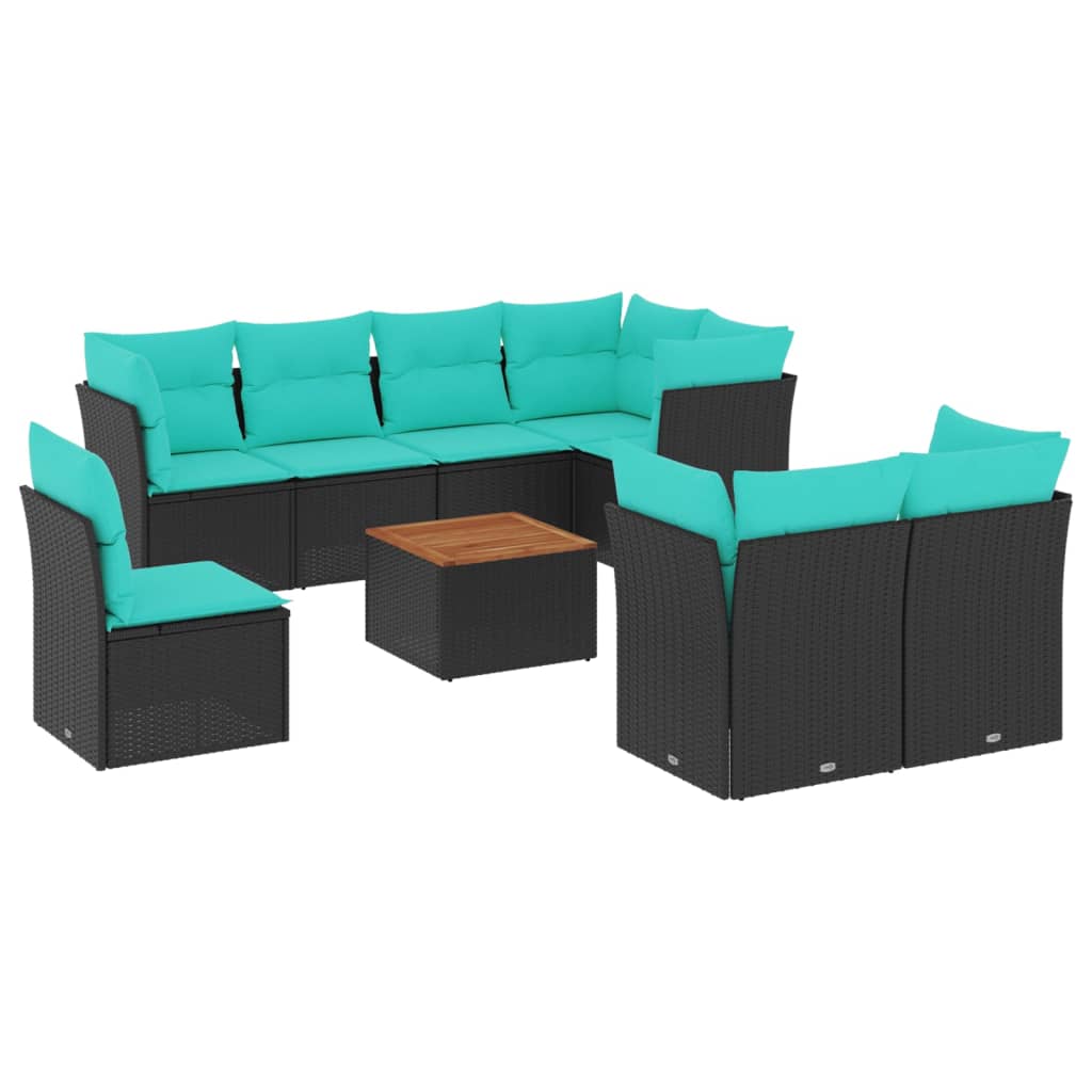 9dílná zahradní sedací souprava s poduškami černá polyratan