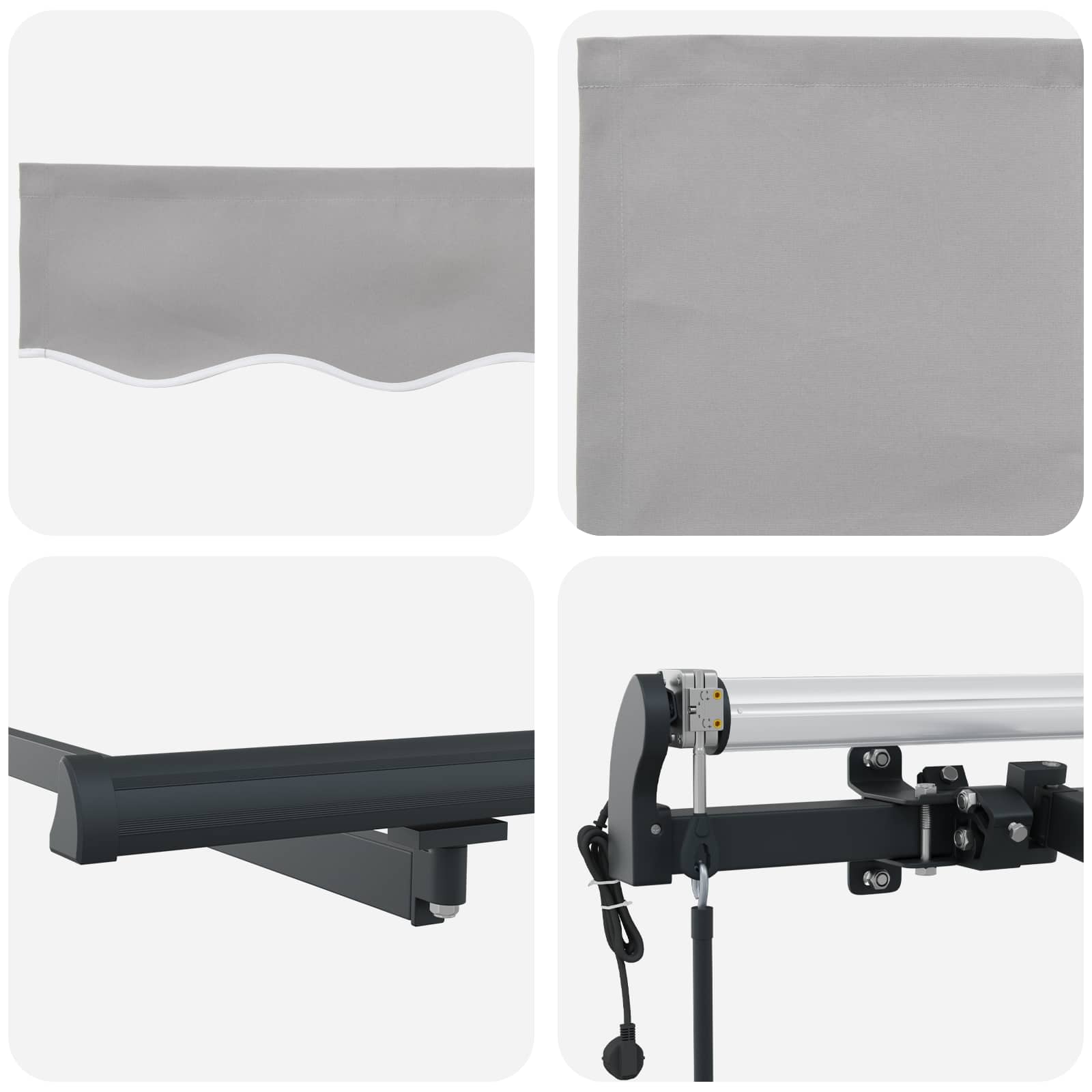 • Složení materiálu: Vyrobená z odolné tkaniny a hliníku, tahle markýza je spolehlivá a stabilní. Tkanina odolává UV záření, vodě a blednutí, což ji dělá ideální pro dlouhodobé venkovní užívání. Hliníkový rám s tkaninou zajišťuje, že markýza vydrží i v extrémních podmínkách.