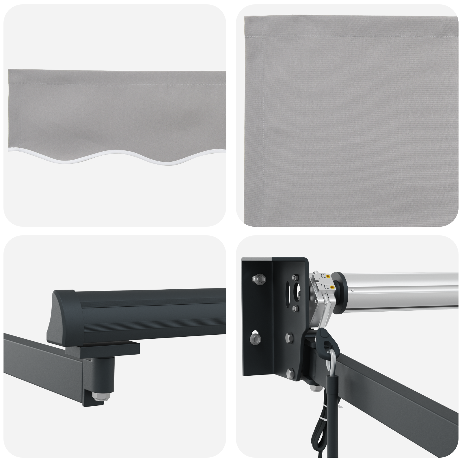 Tato moderní vysouvací markýza poskytuje stylové a funkční stínění pro jakýkoli venkovní prostor a skvěle zapadne do moderních zahrad a teras. Navržena s důrazem na praktičnost, je to ideální volba pro ty, co si rádi užívají venku a chtějí moderní styl. Obdélníkový tvar a elegantní světle šedá barva dodávají minimalistický vzhled, což z ní dělá skvělou volbu pro exteriérové dekorace, přičemž zůstává příjemná a praktická.