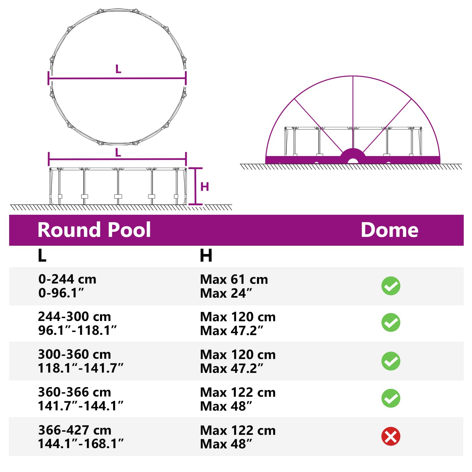 • Robustní materiály: Tento stan z UV-odolného sklolaminátu a vodě- a větru-odolného pokrytí chrání váš bazén před sluncem a přírodními vlivy. Jeho odolná konstrukce zajišťuje dlouhou životnost a snadnou údržbu bazénové oblasti.