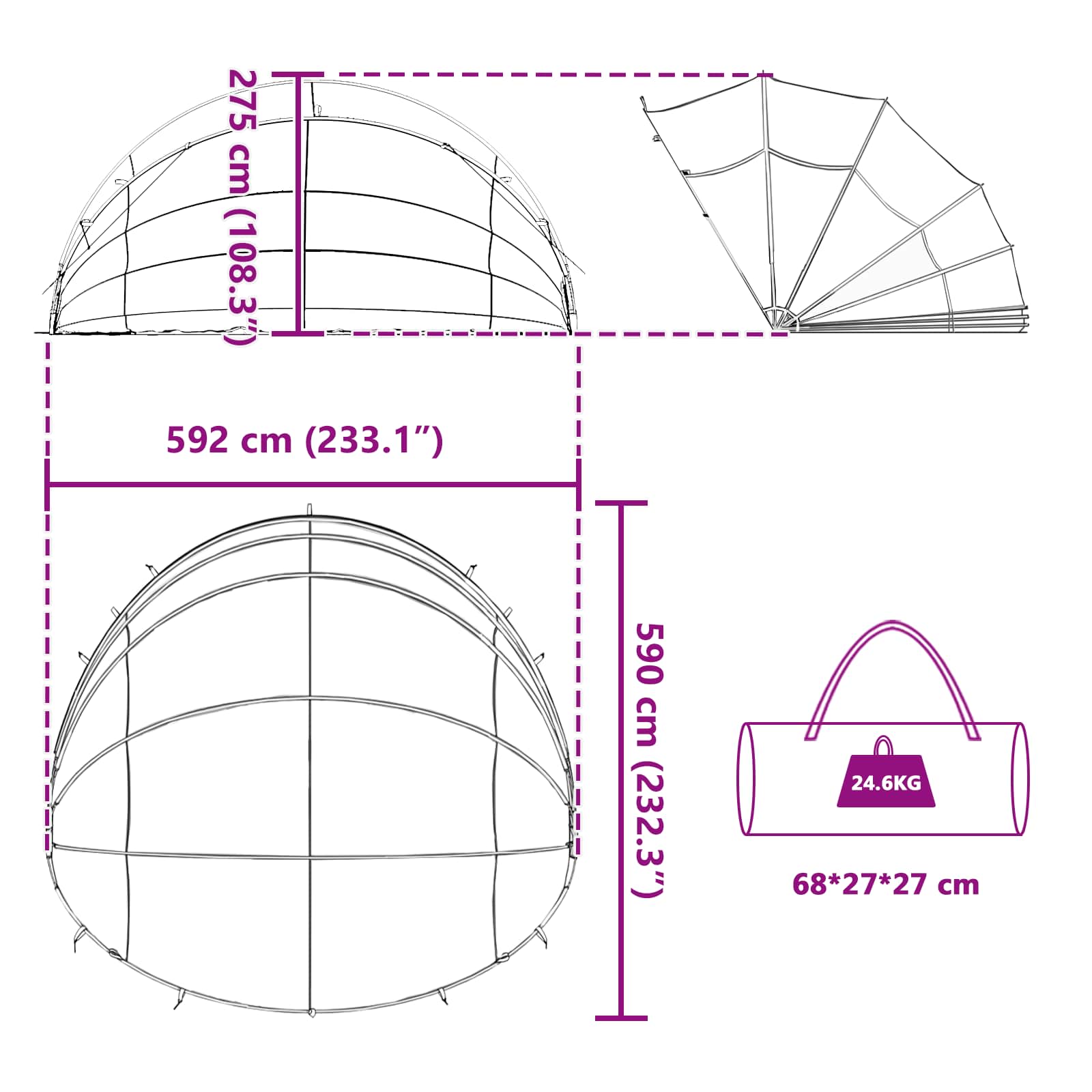 Tento univerzální skládací bazénový stan je perfektní společník pro vaše venkovní chvíle u bazénu. Nabízí ochranu a pohodlí. Je ideální pro moderní zahrady, má elegantní siluetu s jednoduchými prvky. Díky ultra hladké textuře vypadá skvěle a slouží každému, kdo hledá čisté a pohodlné prostředí. Jeho skládací funkce z něho dělá nezbytnou věc pro údržbu a ochranu vašeho bazénu.