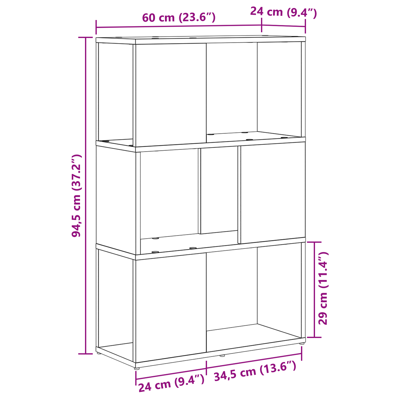 • Celkové rozměry: 60 x 24 x 94,5 cm (D x Š x V)