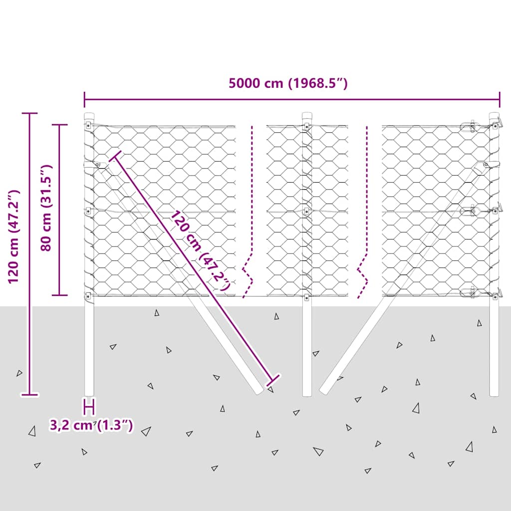 Plotový sloupek. Šedá 50 x 0,8 m (50 mm pletivo) Ocel a PVC