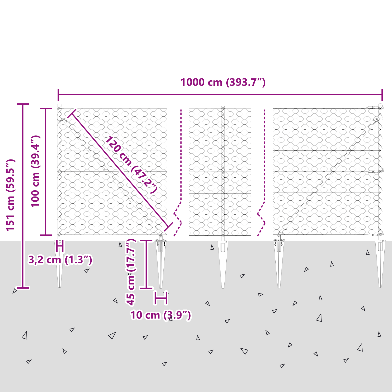 Plotový sloupek. Šedá 10 x 1 m (50 mm síť) Ocel a PVC