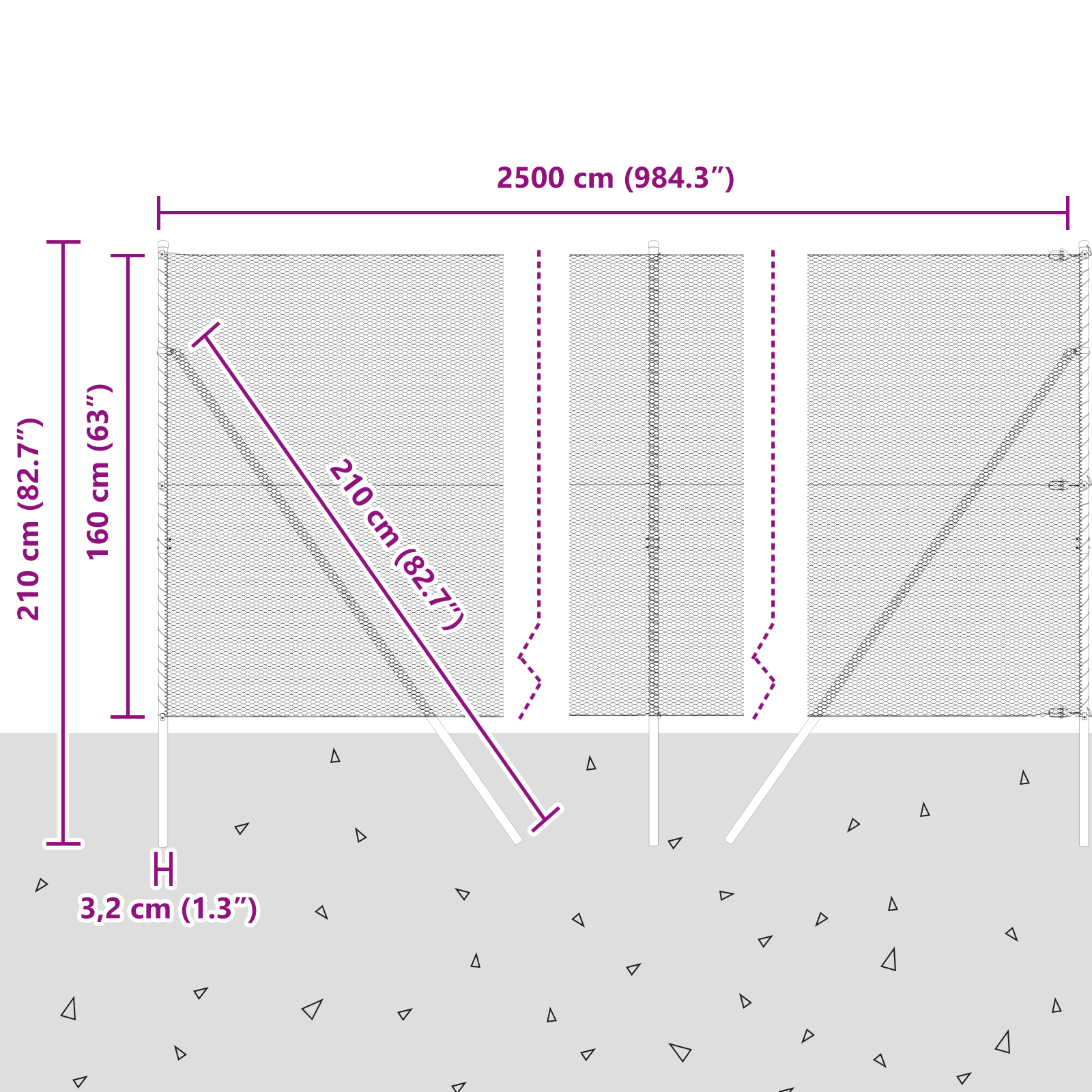 • Celkové rozměry: 2500 x 3,2 x 160 cm (D x Š x V)