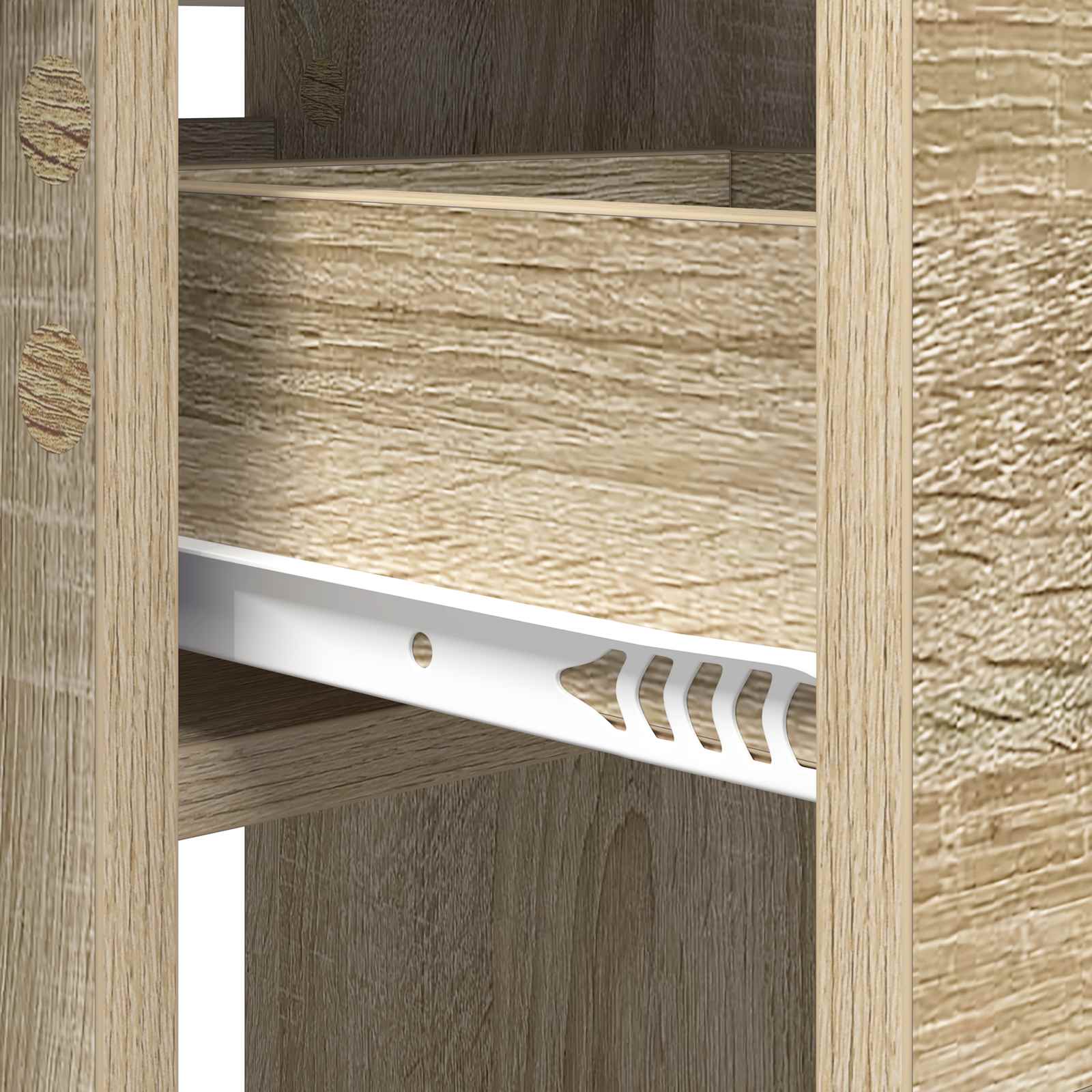 • Policové desky: Zahrnuje vestavěné policové desky, které nabízejí další úložný prostor pro jídelní potřeby. Ať už potřebujete hromadu ubrousků nebo prostírání, police pomáhají udržet prostor přehledný a bez nepořádku.