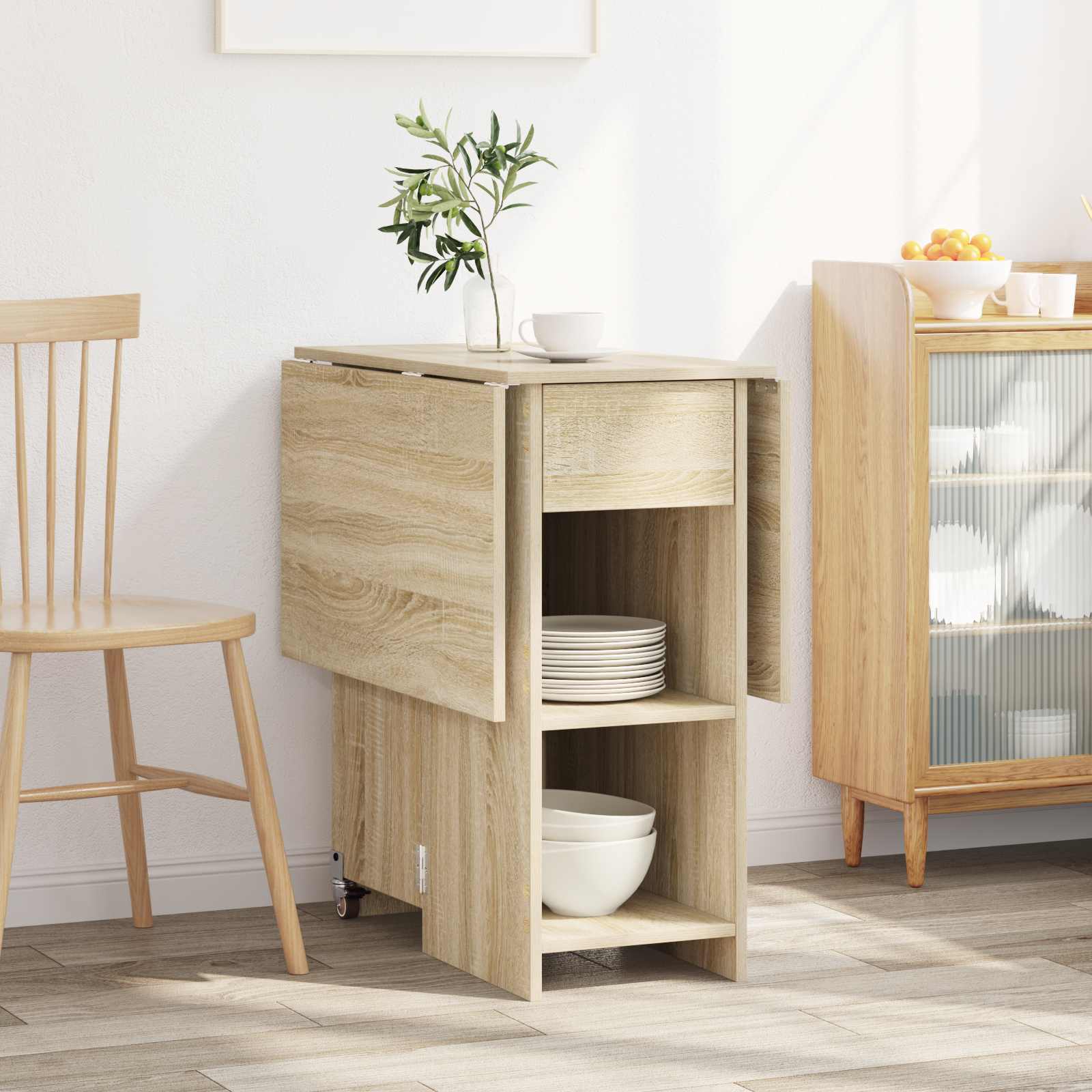 • Snadný pohyb: Navržený tak, abyste ho mohli snadno přemístit mezi jídelnou a kuchyní nebo jinými místnostmi. Skvělá volba pro ty, kdo hledají flexibilní nábytek.