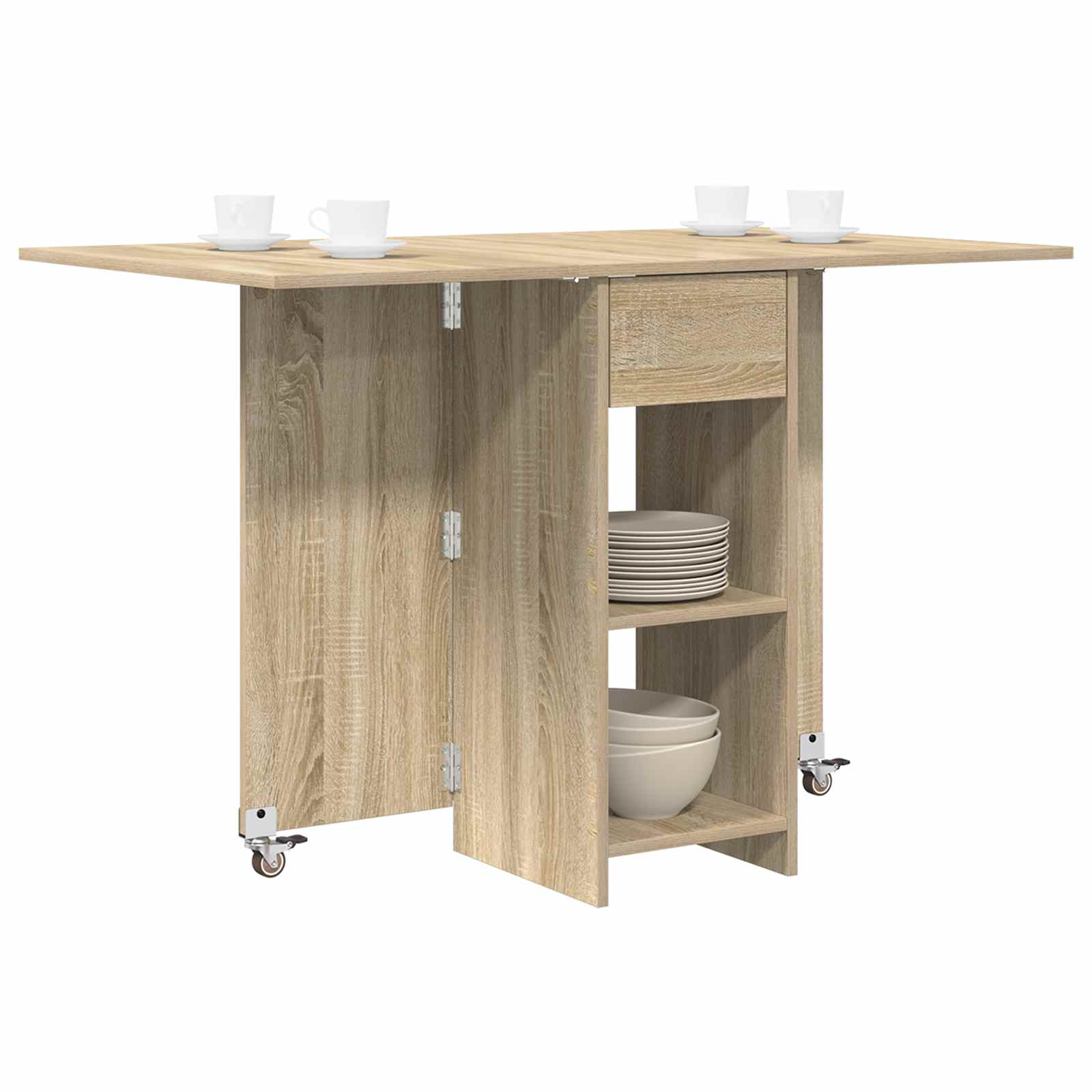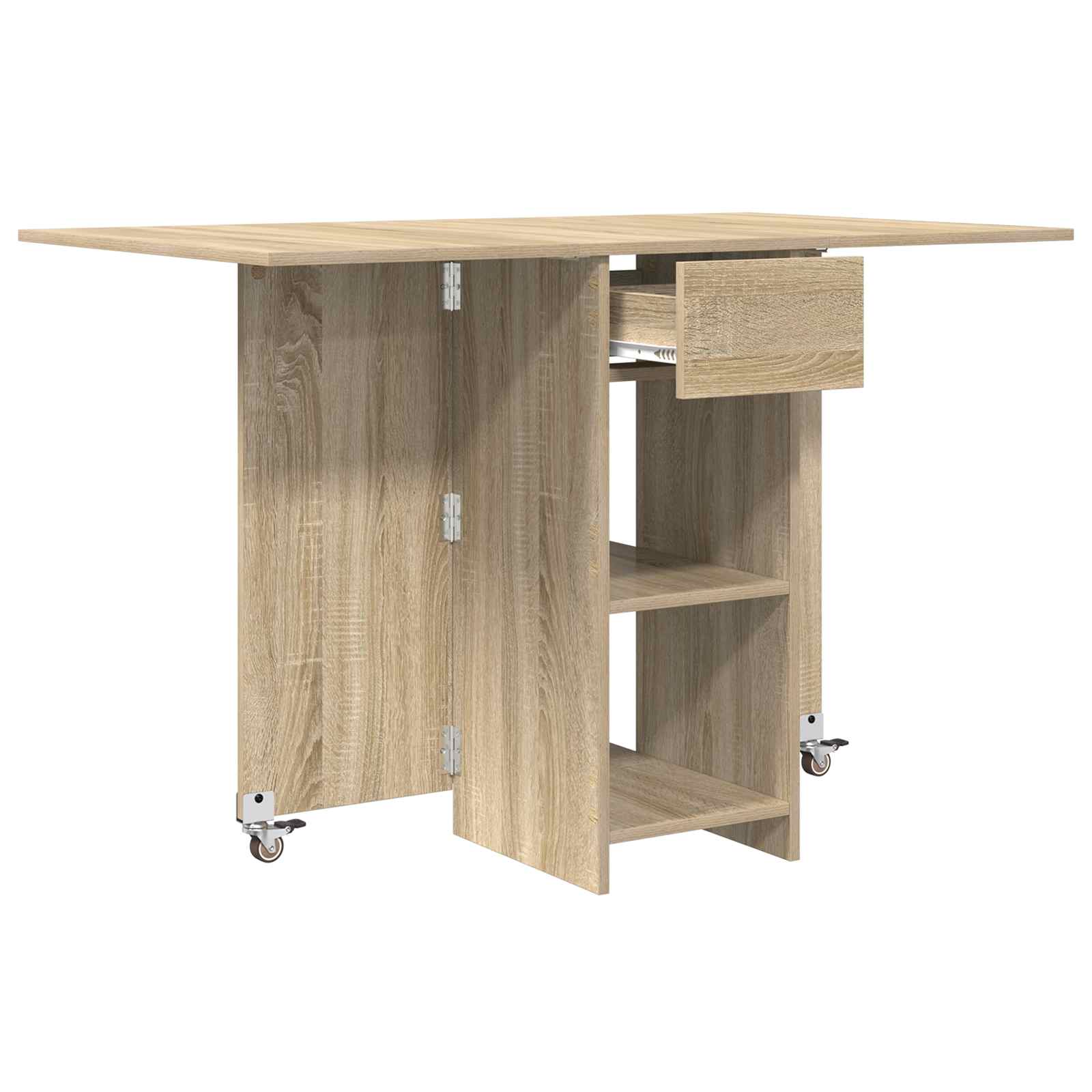 • Skládací deska: Skládací deska vám umožňuje přizpůsobit velikost stolu podle potřeby. Tato funkce šetří místo, což je ideální pro menší prostory a efektivní organizaci bez ztráty stylu.