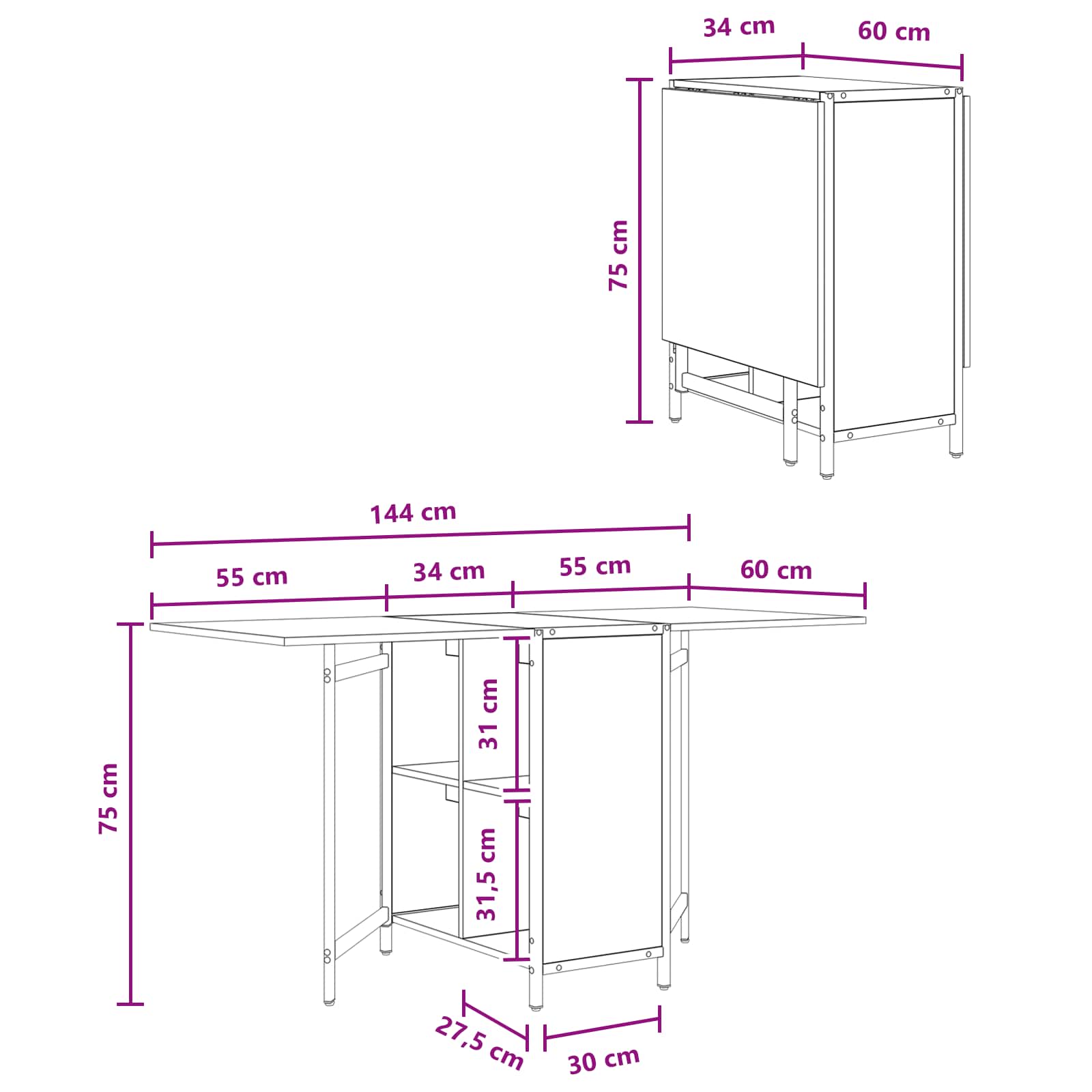 • Skládací deska stolu