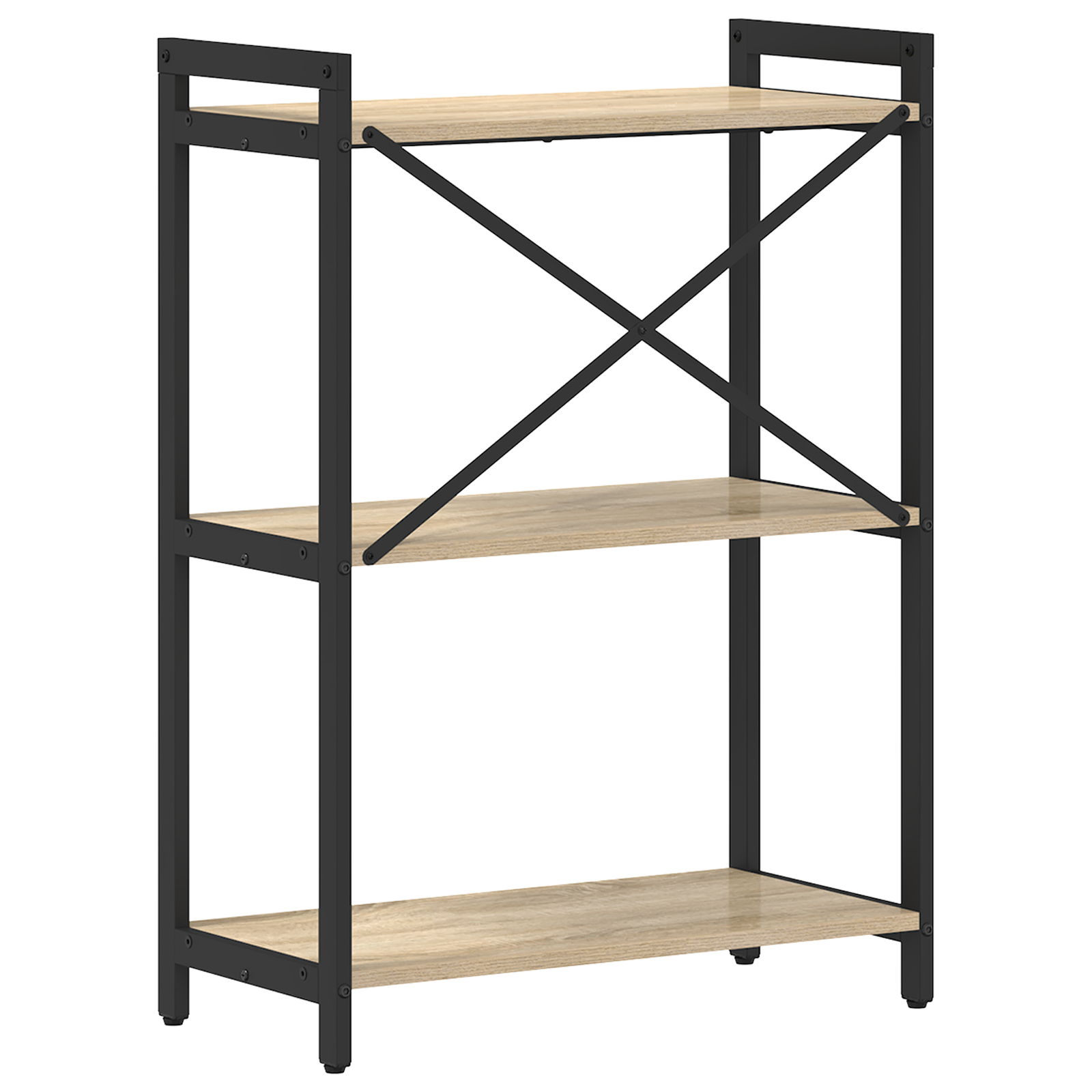 • Černý ocelový rám: Rám je vyroben z pevné oceli v elegantní černé, což zajišťuje jak sílu, tak estetiku. Robusní stavba unese váhu mnoha předmětů a zajišťuje stabilní a bezpečný přístup.