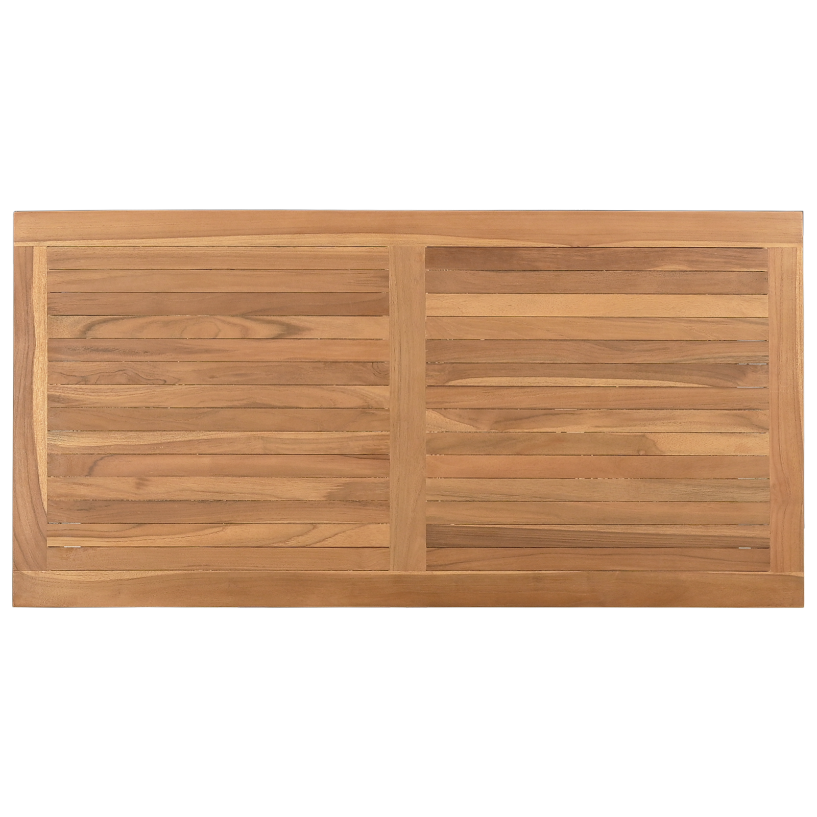 • Masivní teakové dřevo Tento konferenční stolek je vyroben z masivního teakového dřeva, známého svou robustností a bohatou texturou. Materiál zajišťuje, že stůl zůstane pevný a ukáže jemné vzory zrna, které přidávají přírodní dotek k vaší domácí dekoraci. Teak je přirozeně odolný vůči povětrnostním vlivům, takže je vhodný i na venkovní prostory.