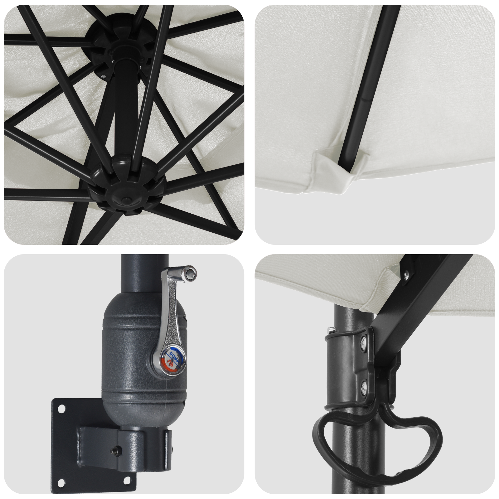 • Prostorově efektivní design: Bez centrálního sloupu máte dost místa pro sezení, bez překážek. Skvěle se hodí do různých venkovních prostor a stále poskytuje stín.