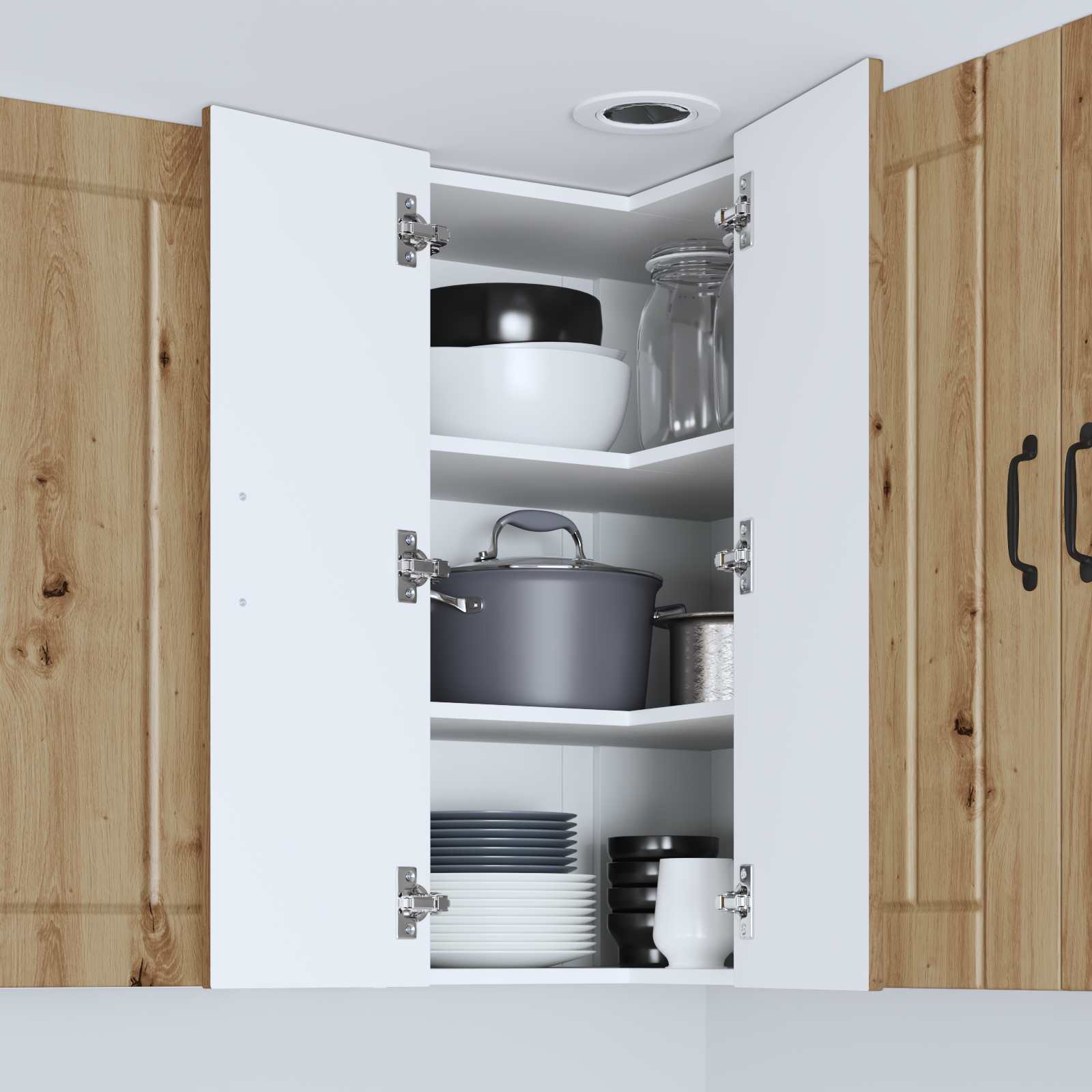 Tato dřevěná kuchyňská skříň, s moderním designem, pozvedne váš kuchyňský prostor. Její minimalistický rám nabízí praktické úložné možnosti pro všechny vaše kuchyňské potřeby, zajišťuje přehledné a uspořádané prostředí. Čisté linie a konstrukce z inženýrského dřeva přidává současný prvek, ideální pro ty, kdo si cení jak stylu, tak funkčnosti.