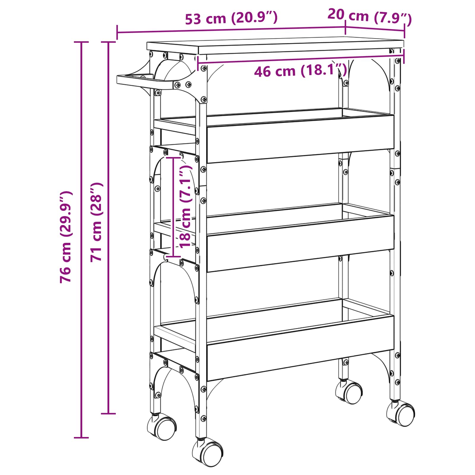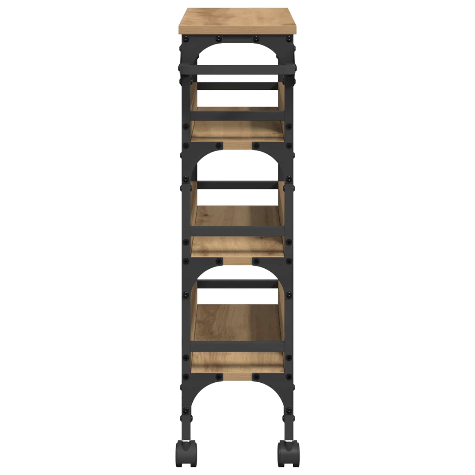 Tento dřevěný kuchyňský vozík přináší industriální styl do vašeho domova. Je vyrobený z pevného kompozitního dřeva, takže snese každodenní použití a navíc vypadá pěkně díky hladkému povrchu. Jeho kompaktni obdélníkový tvar se hodí do různých kuchyňských uspořádání, od malých bytečků po větší prostory, co chtějí rustikální atmosféru. Díky své mobilitě může sloužit jako stacionární kus nebo jako praktický, pohyblivý pomocník.