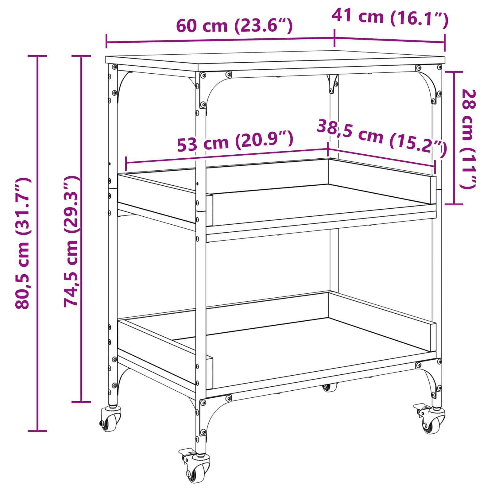 • Celkové rozměry: 60 x 41 x 80,5 cm (Š x H x V)