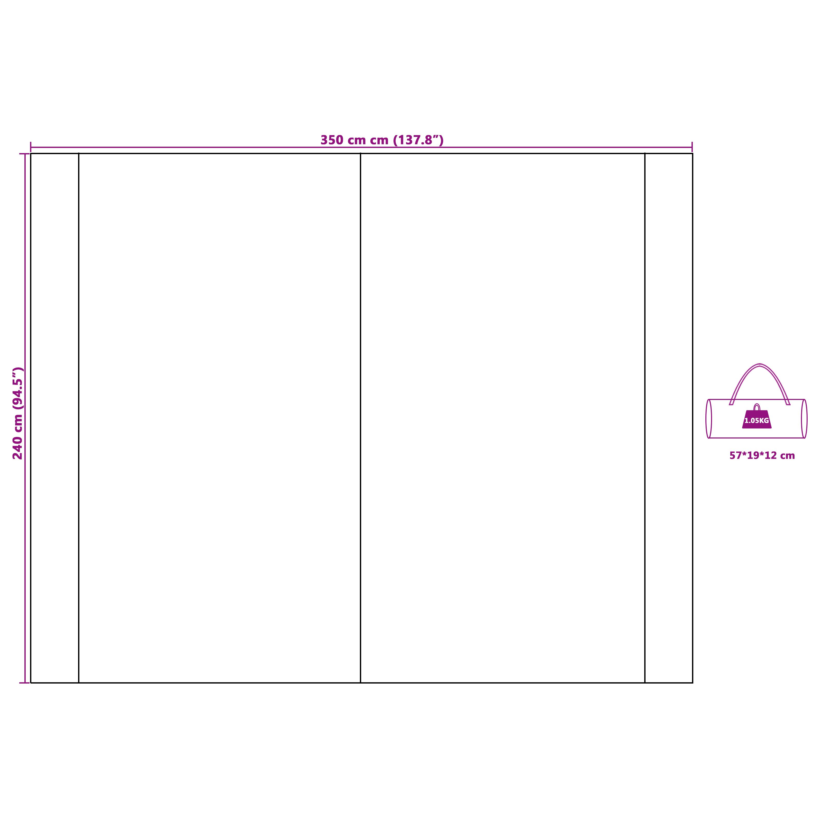 • Celkové rozměry: 240 x 350 cm (D x Š)
