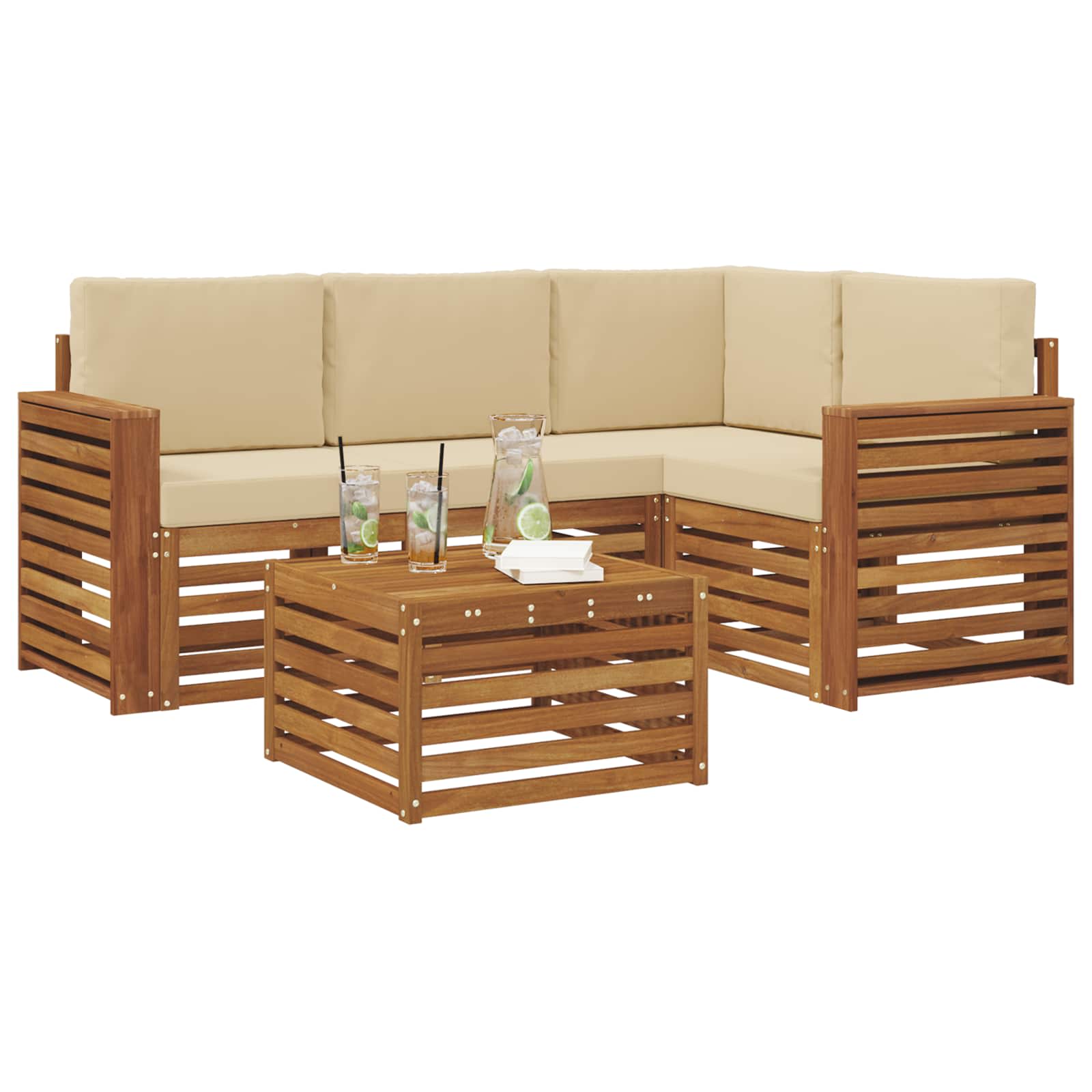 Tento set modulárních sedaček přináší moderní design a praktickou funkčnost, což ideálně obohatí každou zahradu, terasu, okolí bazénu nebo dvorek. Vyrobený z masivního akáciového dřeva s bohatou hnědou barvou, set vytváří příjemnou atmosféru. Jeho modulární povaha podněcuje vaši kreativitu a umožňuje snadno měnit uspořádání podle různých příležitostí, od intimních setkání až po velké oslavy.