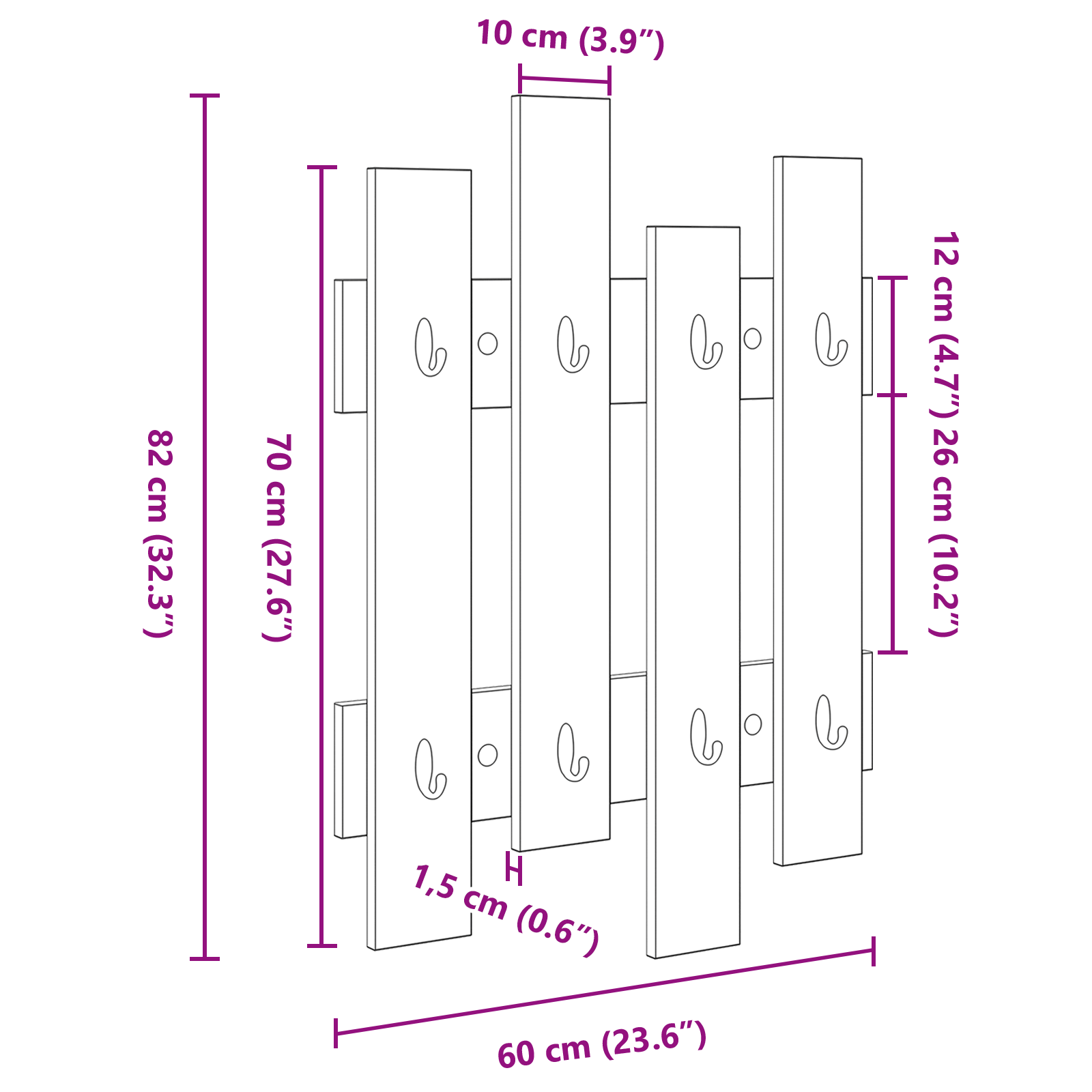 • Celkové rozměry: 60 x 3 x 82 cm (D x Š x V)