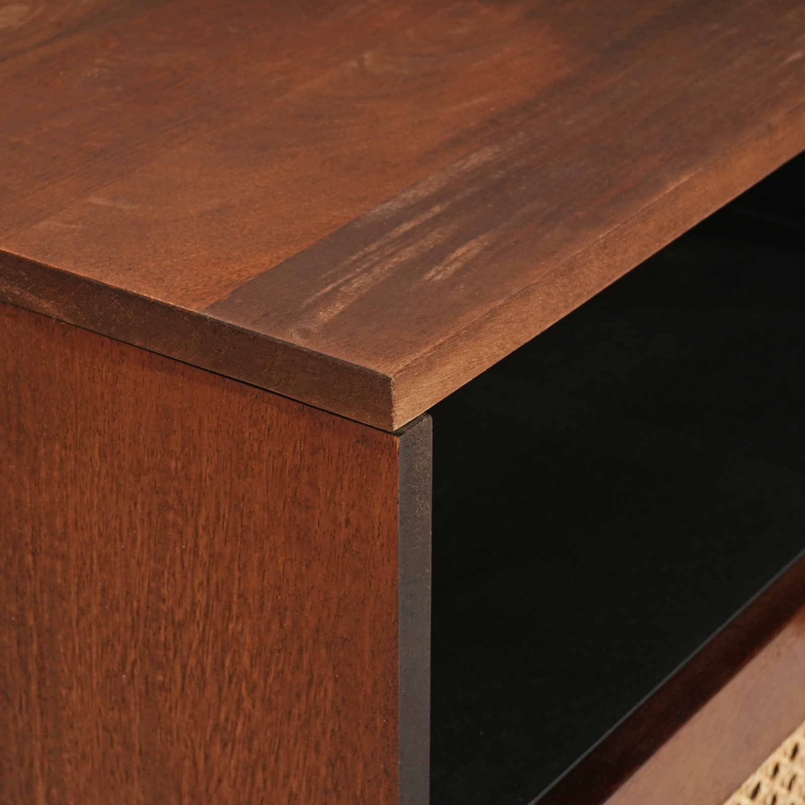 Tento noční stolek je skladný a univerzální, ideální do moderní ložnice. Je vyrobený z masivního magnóliového dřeva, spojuje jednoduchost s funkčností a má elegantní vzhled. Obdélníkový tvar se hodí k jakékoli posteli, a slouží jako místo pro lampu, hodiny nebo osobní věci. Hnědé a béžové tóny dodávají teplo a ladí s různými styly interiéru. Skvělý design, dostatek úložného prostoru a příjemný vzhled dělají z tohoto stolu ideální kousek.