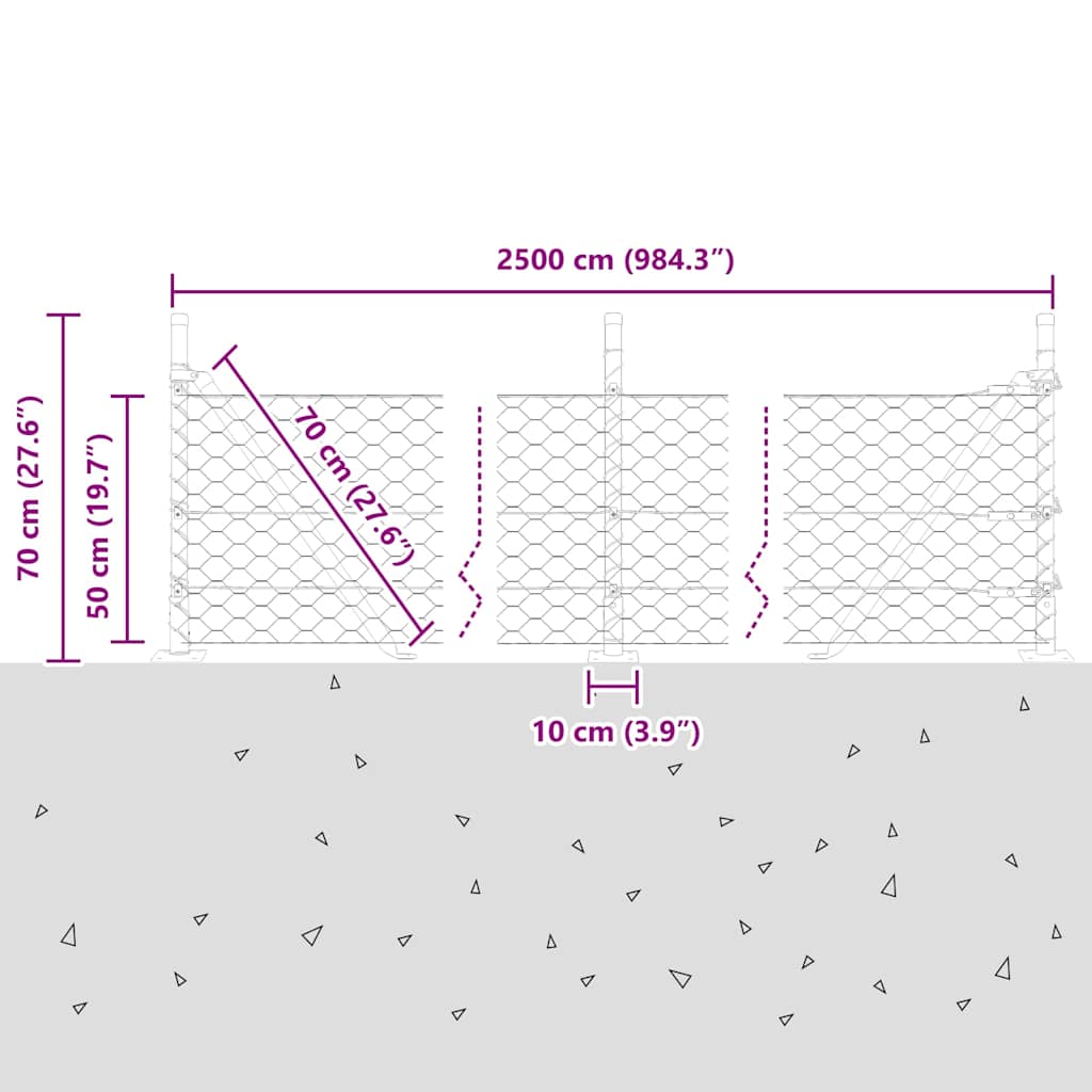 Plotový sloupek. Šedá 25 x 0,5 m (síťka 50 mm) Ocel