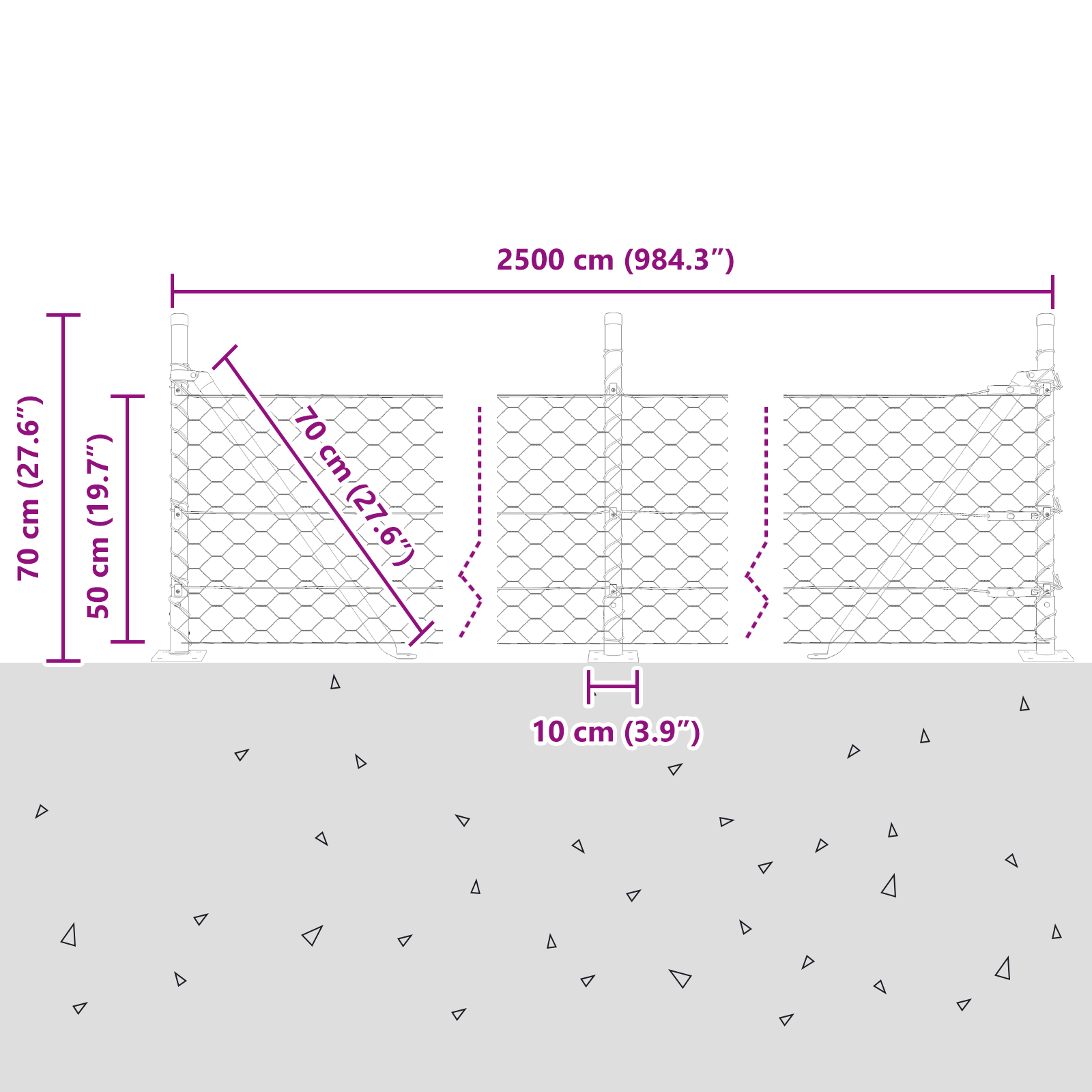 • Celkové rozměry: 2500 x 3,2 x 50 cm (D x Š x V)