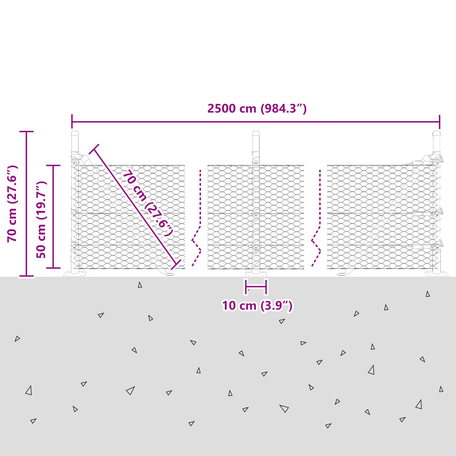 • Celkové rozměry: 2500 x 3,2 x 50 cm (D x Š x V)