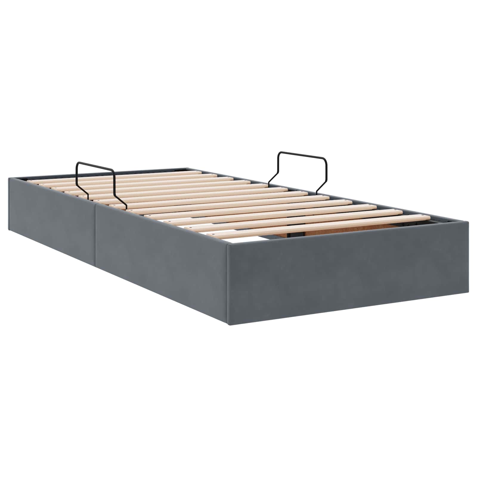 Postel s úložným prostorem s čelo Tmavě šedá 90 x 190 cm samet