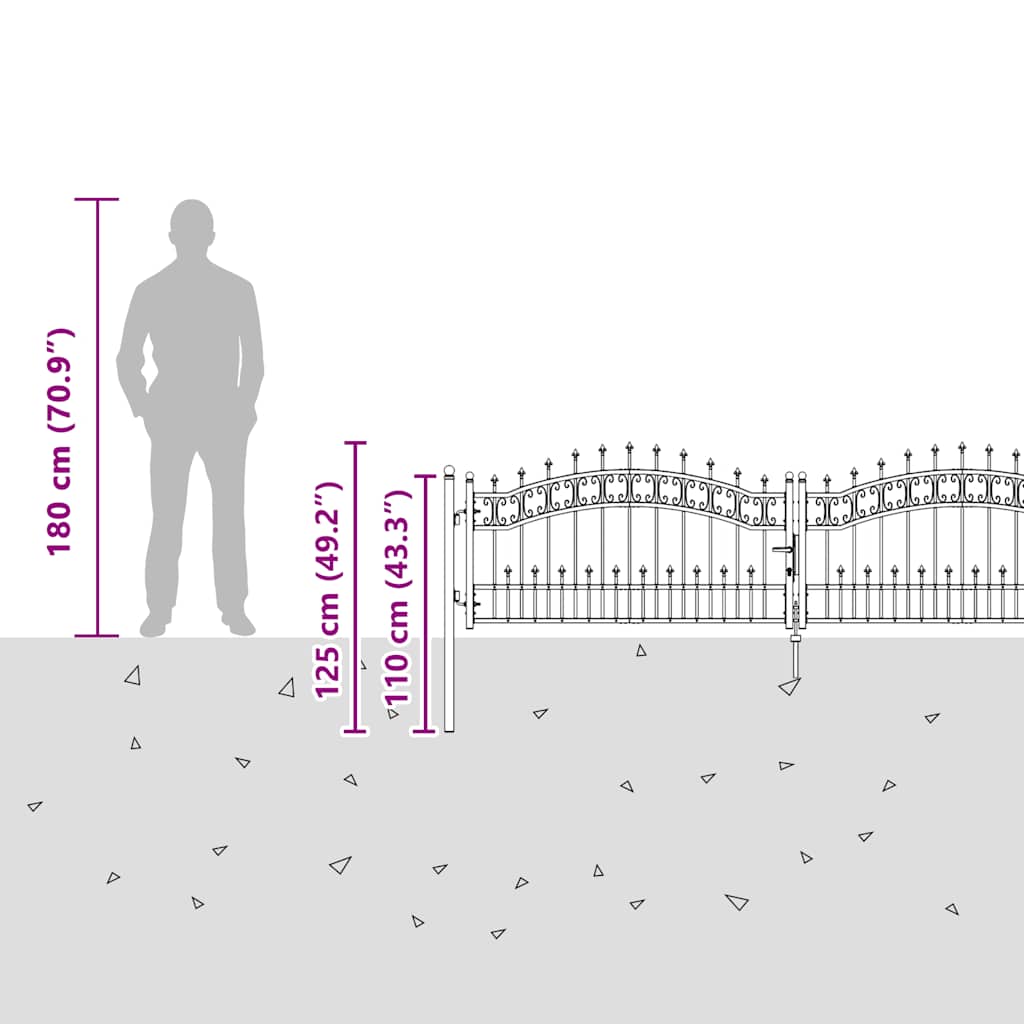 Plotová branka Kampen s kopím nahoře černá 302 x 78 cm ocel