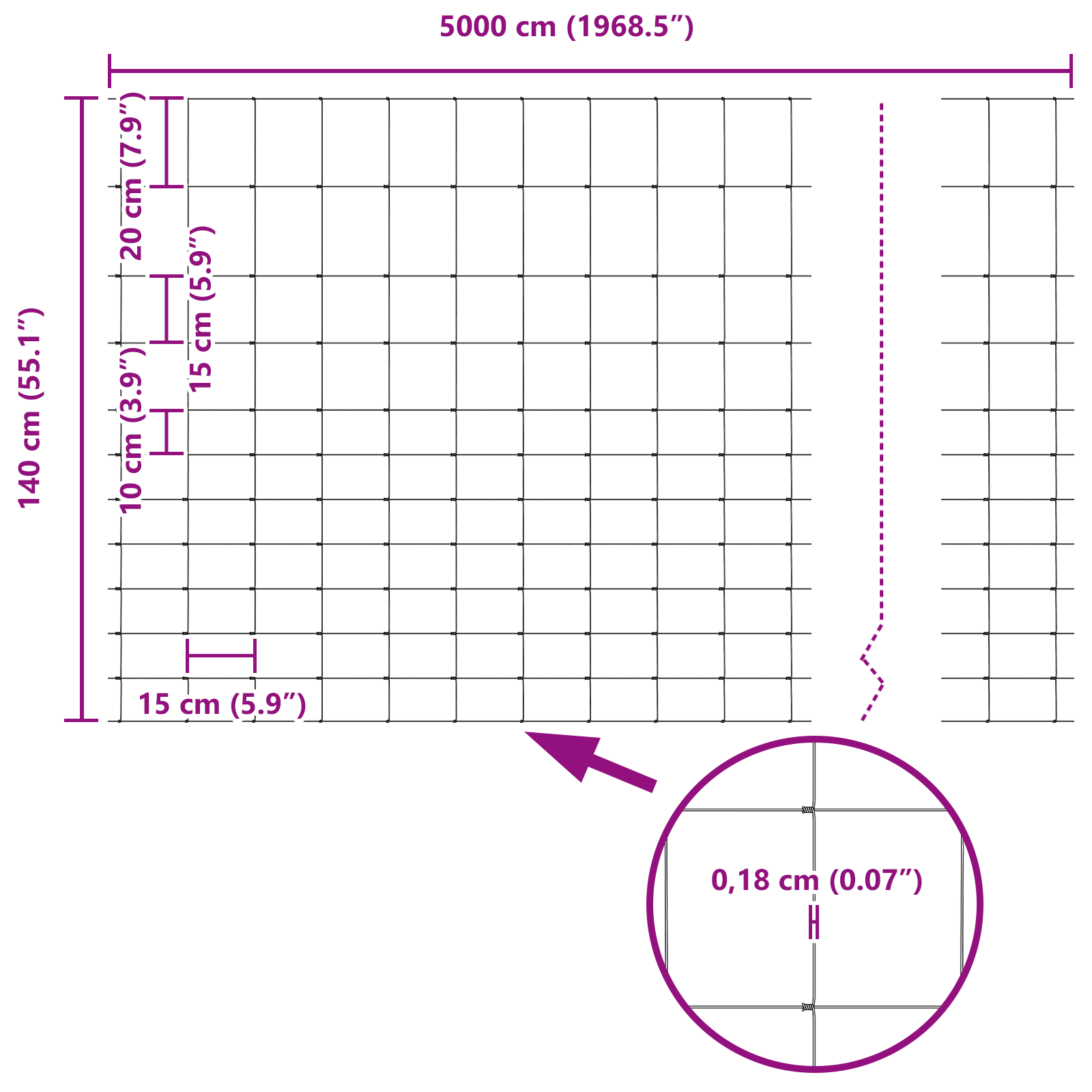 • Celkové rozměry: 5000 x 2,7 x 140 cm (D x Š x V)