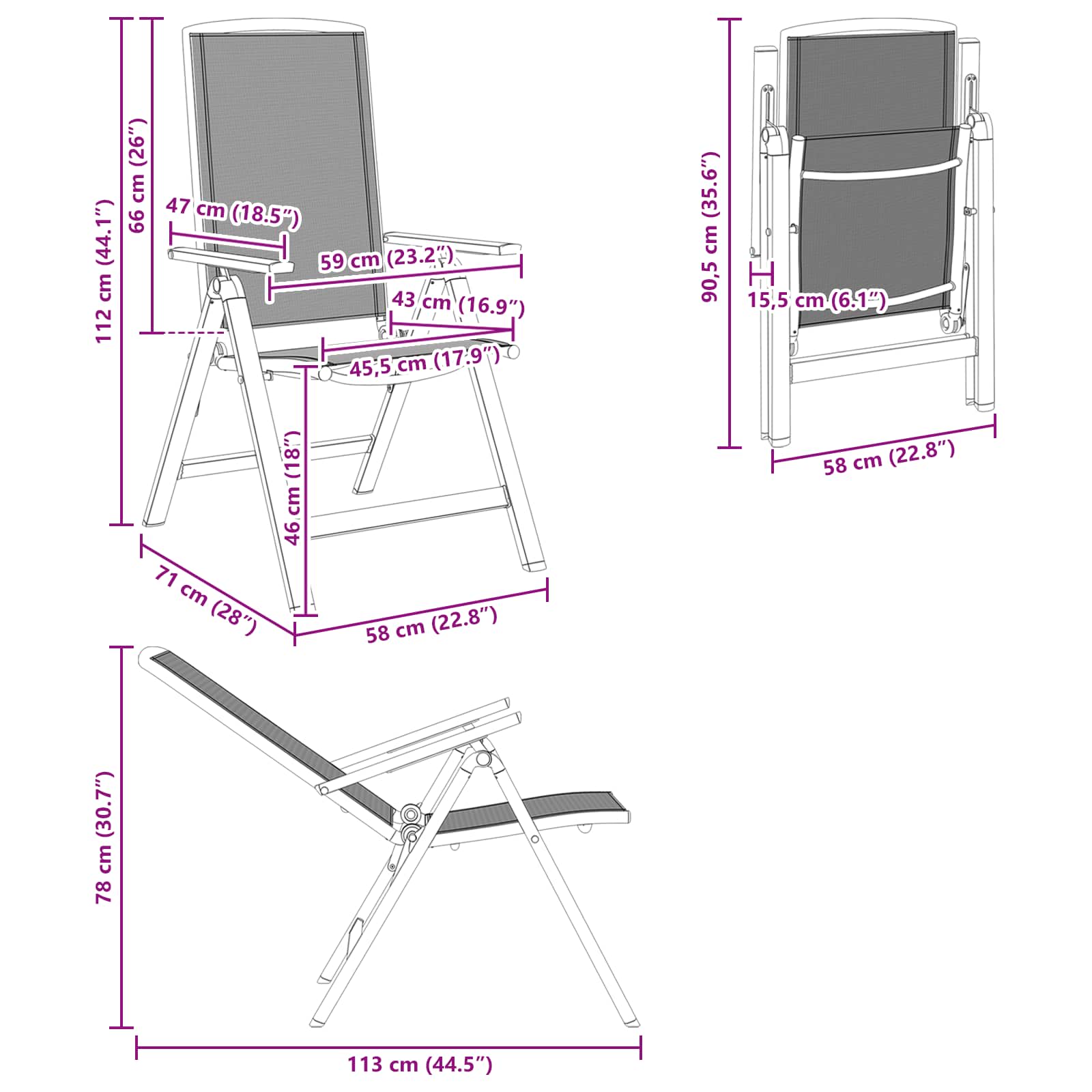 Tyhle sklápěcí zahradní židle spojují skvělý design s jednoduchou estetikou, takže se hodí na terasy, do zahrad nebo k venkovnímu stolu. Jejich čistý tvar se hodí do různých prostředí a zajišťuje funkčnost pro každodenní venkovní sezení. Jsou navržené s důrazem na pohodlí a úsporu místa, aby vám utvořily ideální venkovní posezení.