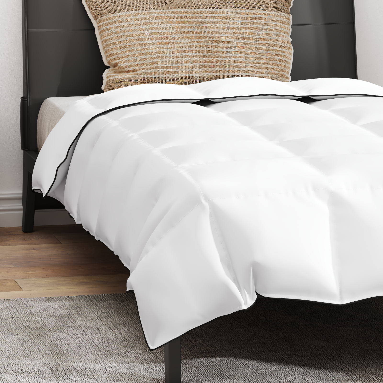 • Prošívaný design Tenhle design drží náplň rovnoměrně rozloženou, takže se vám nestane, že by se tvořily hrudky. Udržuje teplo a zajišťuje luxusní objem po celou dobu používání, aby každá noc byla stejně příjemná. Není to jen funkce, ale i elegantní styl.