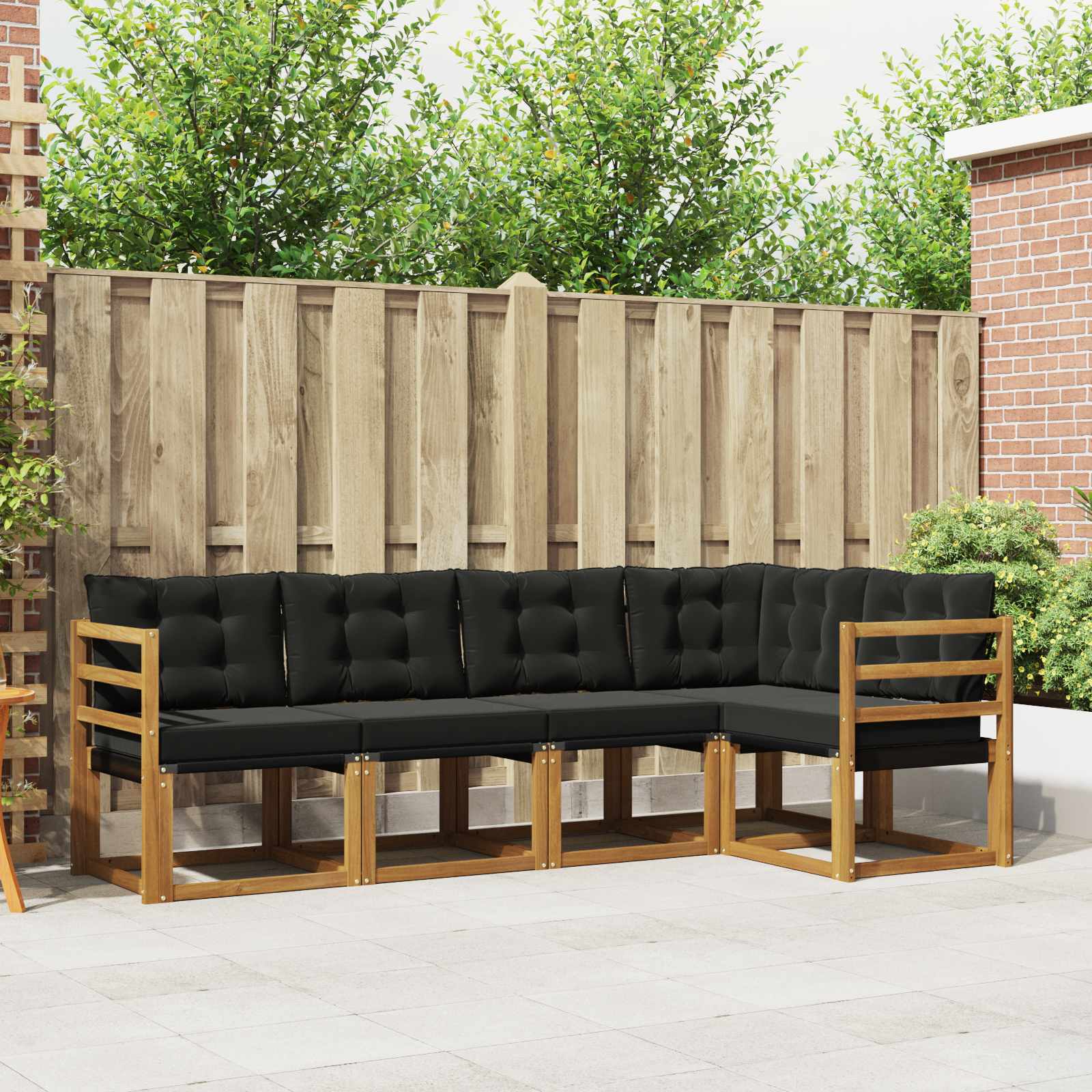 Tato stylová pohovková souprava skvěle zapadne do venkovního obývacího prostoru, nabízí pohodlí a eleganci. Ideální na zahradní párty nebo lenošení u bazénu, má moderní vzhled se čistými liniemi bez zbytečného zdobení a hodí se do zahrad, teras nebo na dvorky. Pohovka je dostupná ve teplých hnědých tónech, které vylepšují krásu vašeho exteriéru. Každý kousek byl precizně vyroben, aby nabízel maximální pohodlí pro všechny, což dělá z této soupravy skvělé místo na rodinná setkání. Doplňuje atmosféru vaší terasy nebo dvorku a láká k odpočinku. Masivní akáciové dřevo: Pohovky jsou skvěle zpracované z kvalitního akáciového dřeva, které je odolné a krásné. Dřevo přináší teplý vzhled a silnou základnu, která odolává běžnému venkovnímu použití, takže se můžete těšit na dlouhá léta bez starosti o počasí. Bohaté, hnědé akáciové dřevo krásně splyne s přírodou. Venkovní polštáře: Tyto polštáře jsou vyrobené z voděodolného materiálu, který se nerozpadá na slunci ani ve vlhkosti. Extra silné polstrování zajišťuje pohodlné sezení, a odnímatelné potahy s zipem se snadno čistí. Tyto polštáře zvyšují komfort a kvalitu sezení. Snadná údržba: Udržování této soupravy v dobrém stavu je jednoduché - stačí otřít povrch navlhčeným hadříkem a máte hotovo! Textilen na sedadlech se lehce čistí, takže i při častém používání si zachovává vzhled a funkčnost. Bude vypadat dobře a vítat vás dlouhá léta. Funkční opěrka: Pevné opěrky ze dřeva přidávají jak praktičnost, tak styl, a zároveň poskytují oporu pro vaše paže. Upevňuje stabilitu a pohodlí pro uživatele, což je prostě ideální pro dlouhé chvilky odpočinku. Pohodlné detaily: Tento set obsahuje Textilen opěrky, které přizpůsobují pohodlí podle vašich potřeb. Prodyšný materiál dává jemnou, ale pevnou oporu, takže se skvěle hodí jak pro relaxaci o samotě, tak s přáteli.