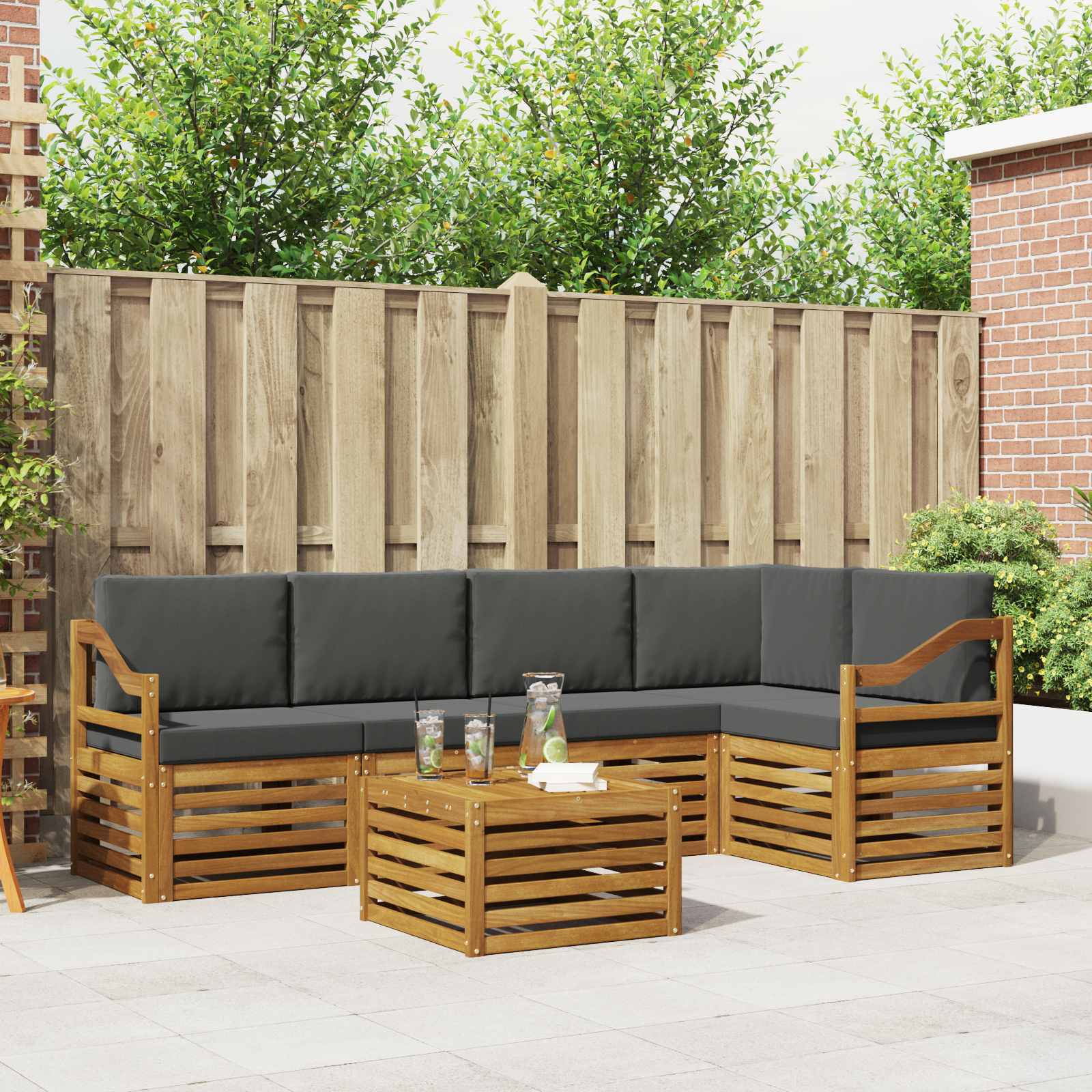Souprava zahradního nábytku spojuje styl s funkčností a stává se tak úžasným středobodem pro každou zahradu či terasu. Její moderní design s čistými liniemi a přehlednými detaily dodává eleganci a podporuje venkovní odpočinek a setkání s rodinou a přáteli. Vyrobená z masivního akáciového dřeva, je to ideální volba pro ty, kteří hledají jak praktičnost, tak i styl. Odolné masivní akáciové dřevo: Vyrobené z masivního akáciového dřeva, toto venkovní nábytkové setkání je velmi trvanlivé a odolné vůči počasí. Robustní konstrukce zajišťuje stabilitu a atraktivní přírodní odstín se hodí do každé zahrady. Design odolný vůči povětrnostním vlivům: Povrch je ošetřen, aby vás chránil před sluncem, deštěm a jinými podmínkami. Lesklý povrch pomáhá uchovat jak vzhled, tak funkčnost, zajišťující dlouhou životnost pro vaši zahradu, terasu nebo dvorek. Součásti a design: Každý kus, včetně opěradel a sedadel, je navržen jak pro styl, tak pro pohodlí. Podpůrné prvky potrhují komfort, zatímco soudržný design vytváří harmonické uspořádání pro různé venkovní příležitosti. Pohodlí a všestrannost: Modulární design umožňuje flexibilní uspořádání vhodné pro různé prostory. Ideální pro odpočinek, společenské akce nebo klidné chvíle s knihou, tato souprava se snadno přizpůsobí vašim potřebám. Snadná údržba: Udržení krásy nábytku je jednoduché; stačí utřít vlhkým hadříkem. Pravidelná péče prodlužuje životnost a udržuje vzhled nábytku.