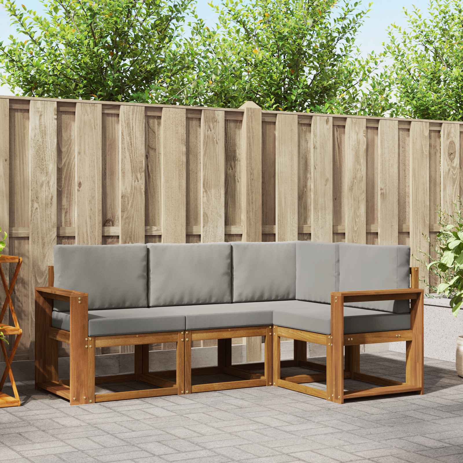 Tahle zahradní sada kombinuje styl a funkčnost, takže bude výraznou dominantou ve vaší zahradě nebo na terase. Moderní design s čistýma linkama a minimalistickým stylem dodává eleganci a podporuje příjemné venkovní chvilky a setkání s přáteli. Všechno je vyrobené z pevného akáciového dřeva, což zaručuje trvanlivost a skvělý vzhled, což z ní dělá ideální volbu pro ty, co chtějí praktický a stylový nábytek na venkovní sezení. Odolné masivní akáciové dřevo: Tento set je vyroben z odolného akáciového dřeva, které skvěle odolává venkovním podmínkám. Pevná konstrukce zaručuje spolehlivou oporu a dlouhou životnost, zatímco teplý přírodní odstín dodá vaší zahradě nebo terase šmrnc. Povrch odolný vůči povětrnostním vlivům: Venkovní nábytek má lakovaný povrch, který chrání před sluncem, drobným deštěm a dalším nepřízní počasí. Lesklý povrch udržuje jeho vzhled a funkčnost, takže vydrží dlouho na vaší zahradě, terase nebo dvorku. Funkční design: Každý kousek, od opěrek až po opěradla, je navrhnutý jak pro vzhled, tak pro praktičnost. Díky opěrným prvkům je sezení ještě pohodlnější, a celkový design dává dohromady hezký a harmonický celek pro různá venkovní využití. Pohodlí a variabilita: Modulární design umožňuje blahodárné přizpůsobení pro různé prostory a potřeby. Perfektní na odpočinek, setkání s přáteli nebo klidné chvíle s knihou. Snadno ho přizpůsobíte každému venkovnímu prostoru, abyste maximalizovali pohodlí a využitelnost. Jednoduchá údržba: Abyste udrželi nábytek v top stavu, stačí otírat povrch vlhkým hadříkem. Vyhněte se používání tvrdých nebo abrazivních čisticích prostředků. Pravidelnou údržbou zajistíte jeho vzhled a životnost.