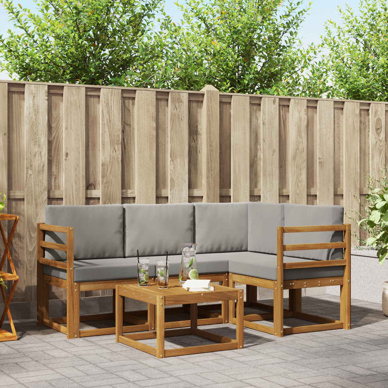Venkovní nábytek spojuje styl a funkčnost, takže se stává úžasným centrem na zahradě nebo terase. Moderní design s čistými liniemi a minimem dekorací dodává nádech elegance a vybízí k venkovnímu odpočinku či společenským akcím. Celá souprava vyrobená z masivního akáciového dřeva zaručuje odolnost a trvalý vzhled, ideální pro všechny, kteří hledají praktický, ale zároveň stylový zahradní nábytek. Odolné masivní akáciové dřevo: Tento venkovní nábytek z masivního akáciového dřeva je známý svou pevností a odolností vůči venkovním podmínkám. Silná konstrukce zajišťuje dlouhou trvanlivost a přírodní tón dodává útulnost každé zahradě nebo terase. Design odolný vůči povětrnostním vlivům: Povrch je ošetřený, aby lépe odolával slunci a dešti. Lesklý vzhled si uchová dlouhou životnost a kvalitní funkčnost, což přispívá k odolnosti vašeho nábytku na zahradě, terase nebo dvorku. Komponenty a design: Každý prvek, od opěrek po opěrky zad, je navržen tak, aby sloužil stylu i funkčnosti. Podpůrné prvky zajišťují pohodlí a jednotný design vytváří harmonický vizuální dojem pro různé venkovní akce. Pohodlí a variabilita: Modulární design umožňuje snadno měnit uspořádání podle potřeby. Skvělé pro odpočinek, setkání s přáteli nebo klidné čtení, souprava se snadno přizpůsobí každému venkovnímu prostoru, a zajistí pohodlí a praktičnost. Snadná péče a údržba: Udržujte nábytek v dobrém stavu otíráním vlhkým hadříkem a vyhýbejte se agresivním čisticím prostředkům. Pravidelná údržba pomáhá zachovat vzhled a zlepšuje životnost nábytku.