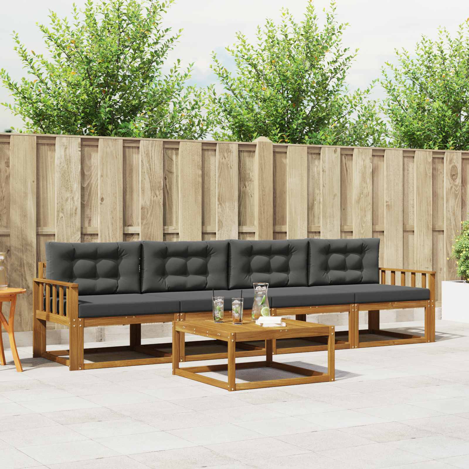 Tato sedací souprava promění vaši zahradu, terasu nebo místo u bazénu na útočiště, které zve k relaxaci svým krásným designem. S důrazem na jednoduchost a funkčnost přináší moderní styl, který skvěle zapadne do venkovního prostředí. Lamelový design propouští vzduch a vytváří příjemnou atmosféru pro sluníčkové rozhovory nebo setkání večer pod hvězdami. Masivní akáciové dřevo: Tato venkovní sedací souprava je vyrobená z kvalitního akáciového dřeva, které je silné a odolné vůči povětrnostním vlivům. Jeho teplé, přírodní odstíny dřeva dodávají luxusní vzhled a skvěle se hodí do přírody. Přehled komponentů: Tento set má pečlivě navržené lamelové opěradlo a robustní rám, co spojuje styl s pevností. Područky, opěradlo a sedáky jsou všechny vyrobené z kvalitního akáciového dřeva a poskytují stabilní vzhled a odolnost. Návrh funkčních vlastností: Výhodou tohoto setu je modularita, což znamená, že si můžete sedací soupravu snadno přizpůsobit podle potřeby. Každý díl má opěradlo a lamelový design, co zvyšuje pohodlí. Doporučeno pro venkovní použití: Skvělé pro zahrady, terasy a u bazénu, tento set vybízí k dlouhým odpočinkovým dnům. Odolje vůči povětrnostním vlivům zajistí jeho dlouhou životnost, což z něj dělá skvělou volbu pro každého, kdo chce vylepšit venkovní prostor. Údržba a péče: Aby tento set vypadal co nejlépe, vyhýbejte se přímému slunci a používejte kryt, když se nepoužívá. Pravidelně otírejte vlhkým hadříkem, abyste udrželi skvělý vzhled, a zajistěte si, že vám dlouho vydrží.