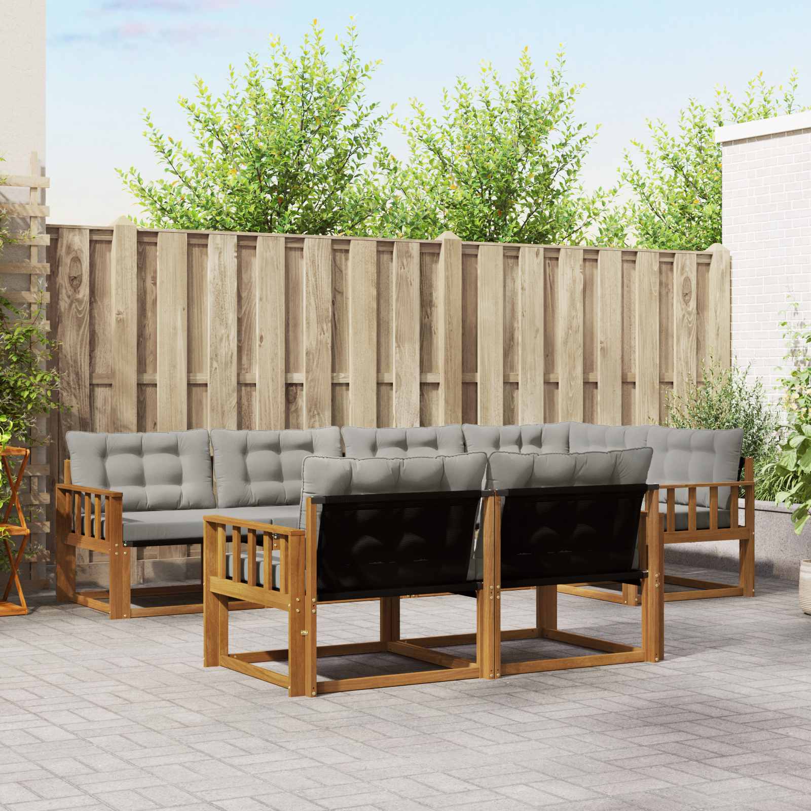 Sada venkovního nábytku spojuje styl s funkčností a je ideálním středobodem pro každou zahradu nebo terasu. Její moderní design s čistými liniemi dodává šmrnc, zatímco podporuje venkovní odpočinek a zábavu. Výroba z masivního akáciového dřeva znamená, že bude vypadat skvěle dlouho, a to je super pro ty, kdo hledají jak praktičnost, tak vzhled. Odolné masivní akáciové dřevo: Vyrobené z akácie, tahle venkovní sada nábytku je nesmírně robustní a odolává různým venkovním podmínkám. Stabilní konstrukce zajišťuje dlouhou životnost a teplý tón dřeva doplní zahradu nebo terasu. Design odolný vůči počasí: Lakovaný povrch nabízí extra ochranu před sluncem a mírným deštěm. Pomáhá udržet jak vzhled, tak funkčnost, a tím zaručuje dlouhou životnost v exteriéru. Komponenty a design: Všechno je promyšlené od opěradel po loketní opěrky, takže je to stylové i funkční. Pohodlné opěrky zvyšují komfort a design skvěle ladí s různými venkovními příležitostmi. Pohodlí a univerzálnost: Modulární design umožňuje rychlé změny uspořádání pro různé potřebné prostory. Perfektní pro relaxaci, večerní posezení nebo klidné čtení knihy, snadno se přizpůsobí jakémukoli exteriéru, čímž maximalizuje pohodlí. Snadná péče a údržba: Abys měl nábytek v dobrém stavu, stačí otírat hadříkem a vyhnout se drsným čisticím prostředkům. Pravidelná údržba udrží nábytek v pěkné kondici a prodlouží jeho životnost.