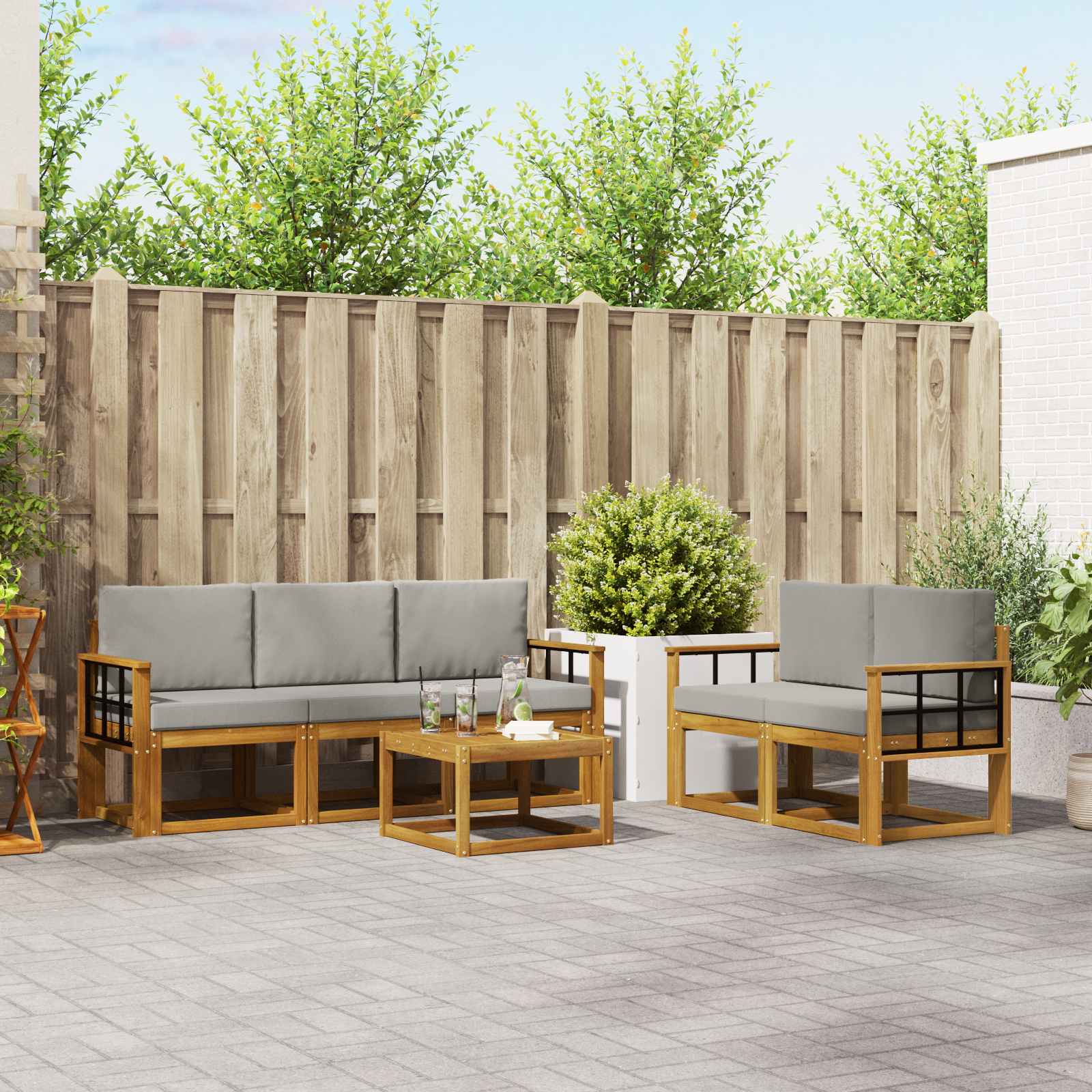 Tahle souprava venkovního nábytku spojuje styl s funkčností a skvěle se hodí jako ústřední bod pro vaši zahradu nebo terasu. Její moderní design s čistými liniemi vypadá elegantně a podněcuje k odpočinku venku a setkání s přáteli. Celá je vyrobená z masivního akáciového dřeva, což zaručuje odolnost a krásný vzhled, ideální pro ty, kdo hledají praktický a šik nábytek do exteriéru. Odolné masivní akáciové dřevo: Tato souprava venkovního nábytku je vyrobená z masivního akáciového dřeva, které se vyznačuje odolností vůči venkovním podmínkám. Pevná konstrukce poskytuje spolehlivou oporu a dlouhou stabilitu, zatímco teplý přírodní tón dodává šmrnc vaší zahradě nebo terase. Odolný design vůči povětrnostním vlivům: Povrch je ošetřen tak, aby odolával slunci, lehkému dešti a dalším venkovním vlivům. Lesklý povrch uchovává jak vzhled, tak funkčnost a zajistí dlouhou životnost pro vaši zahradu, terasu nebo dvorek. Komponenty a design: Každý prvek, ať už jsou to područky nebo opěradla, je navržen pro styl a funkčnost. Všechny prvky zvyšují komfort a vytvářejí vizuálně harmonický celek, ideální pro různé venkovní akce. Pohodlí a flexibilita: Modulární design umožňuje flexibilní uspořádání vhodné pro různé prostory a potřeby. Ať už chcete relaxovat, bavit se s přáteli nebo si jen tak číst, tahle souprava se skvěle přizpůsobí jakémukoliv venkovnímu prostředí a poskytne maximální pohodlí. Snadná údržba: Aby byl nábytek pořád v top stavu, doporučuje se utírat vlhkým hadříkem a chránit ho zakrytím, když ho nepoužíváte. Vyhněte se agresivním čisticím prostředkům. Pravidelná péče významně prodlužuje životnost a krásu nábytku.