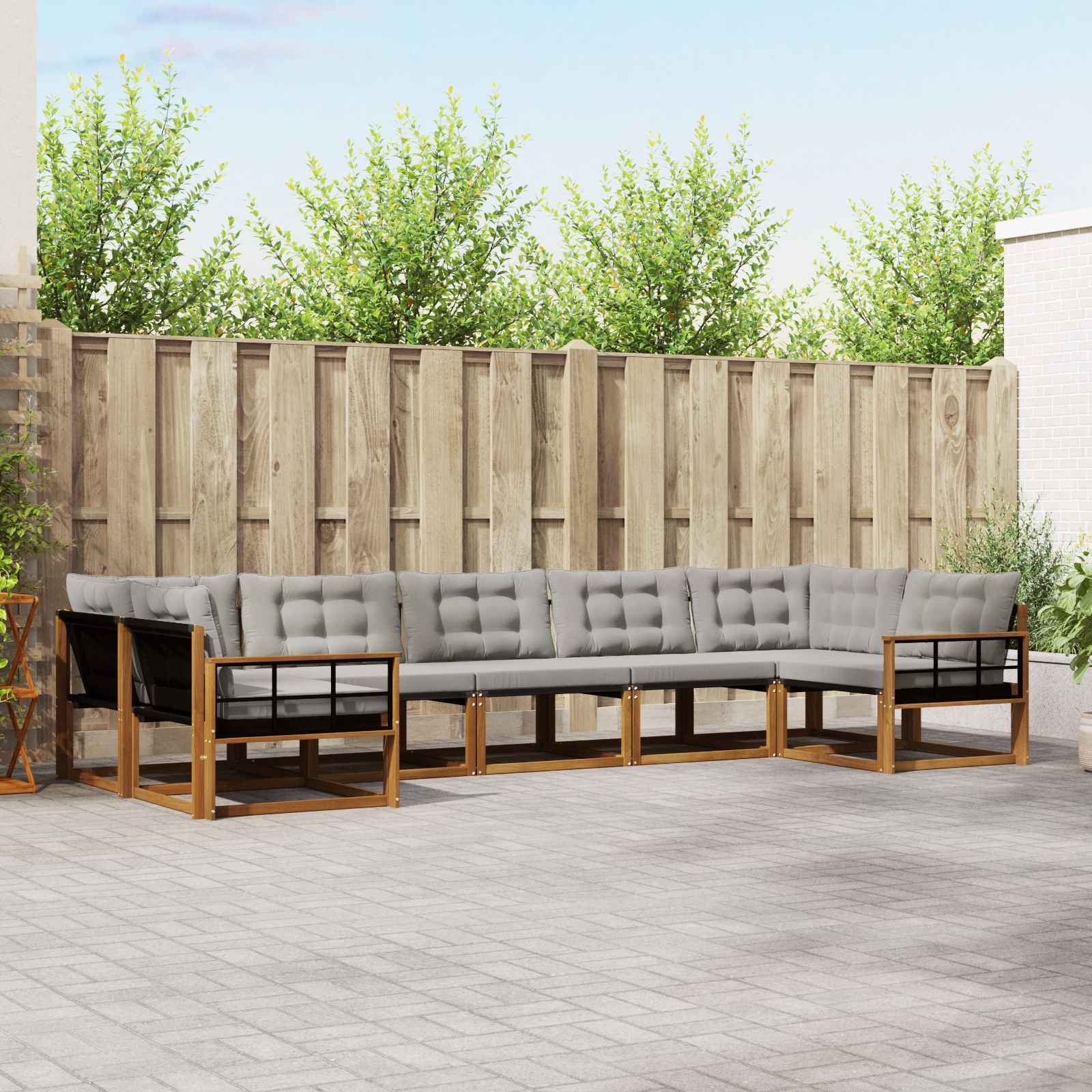 Tahle venkovní souprava spojuje styl a funkčnost, takže se stane hlavním tahákem každé zahrady nebo terasy. Její moderní design s jednoduchými liniemi a minimalistickým stylem dodává elegantní dojem, a zároveň vytváří prostor pro relaxaci a společenské akce. Vyrobena z kvalitního akáciového dřeva, tato souprava zajišťuje dlouhou životnost a krásný vzhled, ideální volba pro ty, kdo hledají praktický a elegantní venkovní nábytek. Odolné masivní akáciové dřevo: Vyrobené z vysoce kvalitního akáciového dřeva, tahle souprava venkovního nábytku je postavená tak, aby odolávala venkovním podmínkám. Pevná konstrukce znamená spolehlivou oporu a dlouhou životnost, zatímco přírodní teplé barvy dodávají vaší zahradě nebo terase parádní atmosféru. Design odolný vůči počasí: Tato souprava je opatřena lakovaným povrchem, který poskytuje ochranu před sluncem, malým deštěm a dalšími povětrnostními vlivy. Lesklý povrch pomáhá udržet její vzhled i funkčnost, takže klidně užijete bez obav o dlouhou životnost pro vaši zahradu nebo terasu. Komponenty a design: Každý kousek, od opěrek po židle, je navržen tak, aby byl stylový a funkční. Podpůrné prvky zajišťují lepší pohodlí a celkový harmonický design se hodí k různým venkovním akcím. Pohodlí a všestrannost: Modulární design znamená, že si soupravu můžeš uspořádat podle potřeby a podle prostoru. Je ideální pro relaxaci, rodinné sešlosti nebo i klidné chvilky s knihou, snadno se přizpůsobí každému venkovnímu prostoru a maximálně využívá komfort a funkčnost. Snadná údržba: Aby nábytek vypadal pořád skvěle, stačí ho otírat vlhkým hadříkem a vyhnout se agresivním čisticím prostředkům. Když se o něj pravidelně staráte, zachováte jeho vzhled a prodloužíte mu životnost.