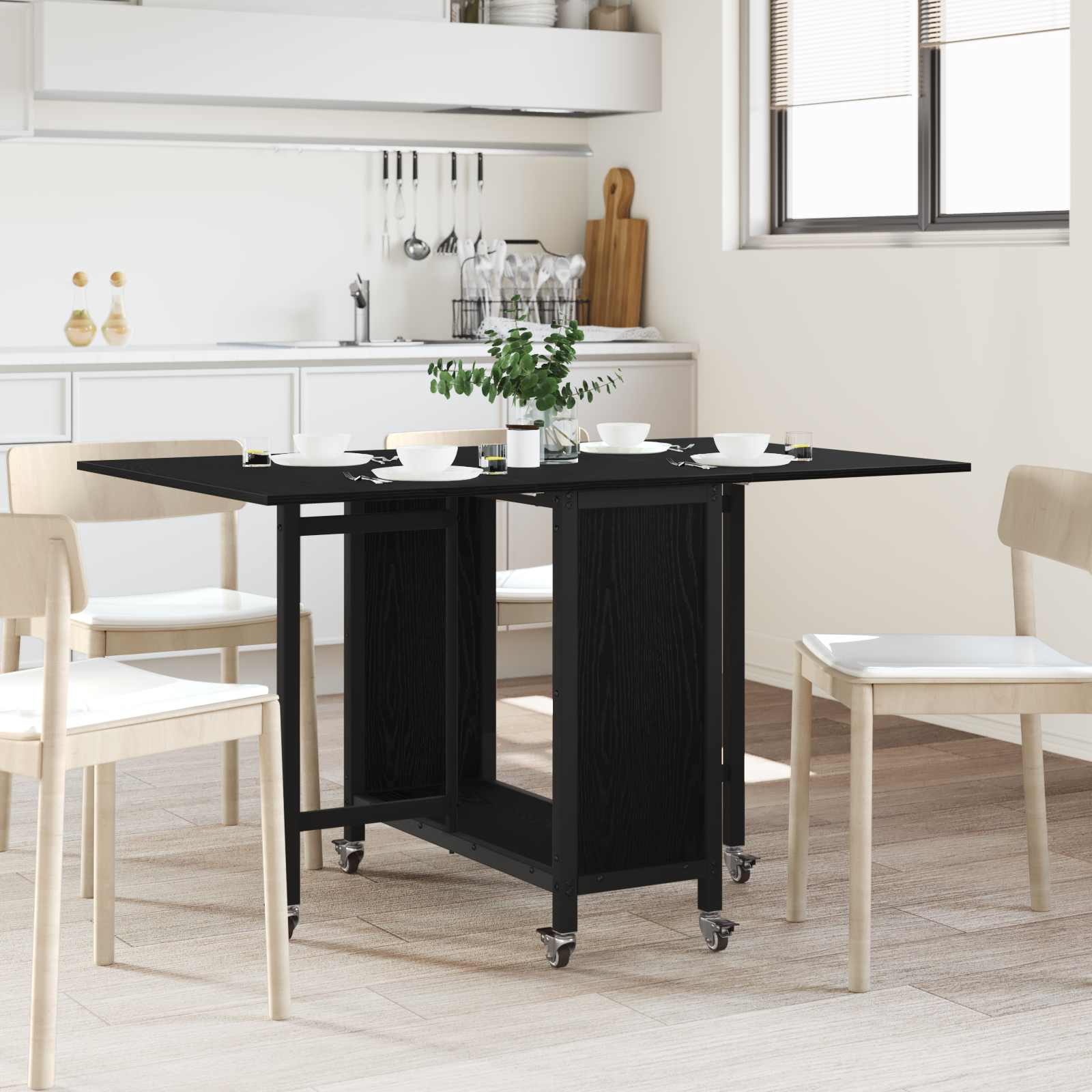 Skládací jídelní stůl s kolečky 130 x 80 x 76,5 cm