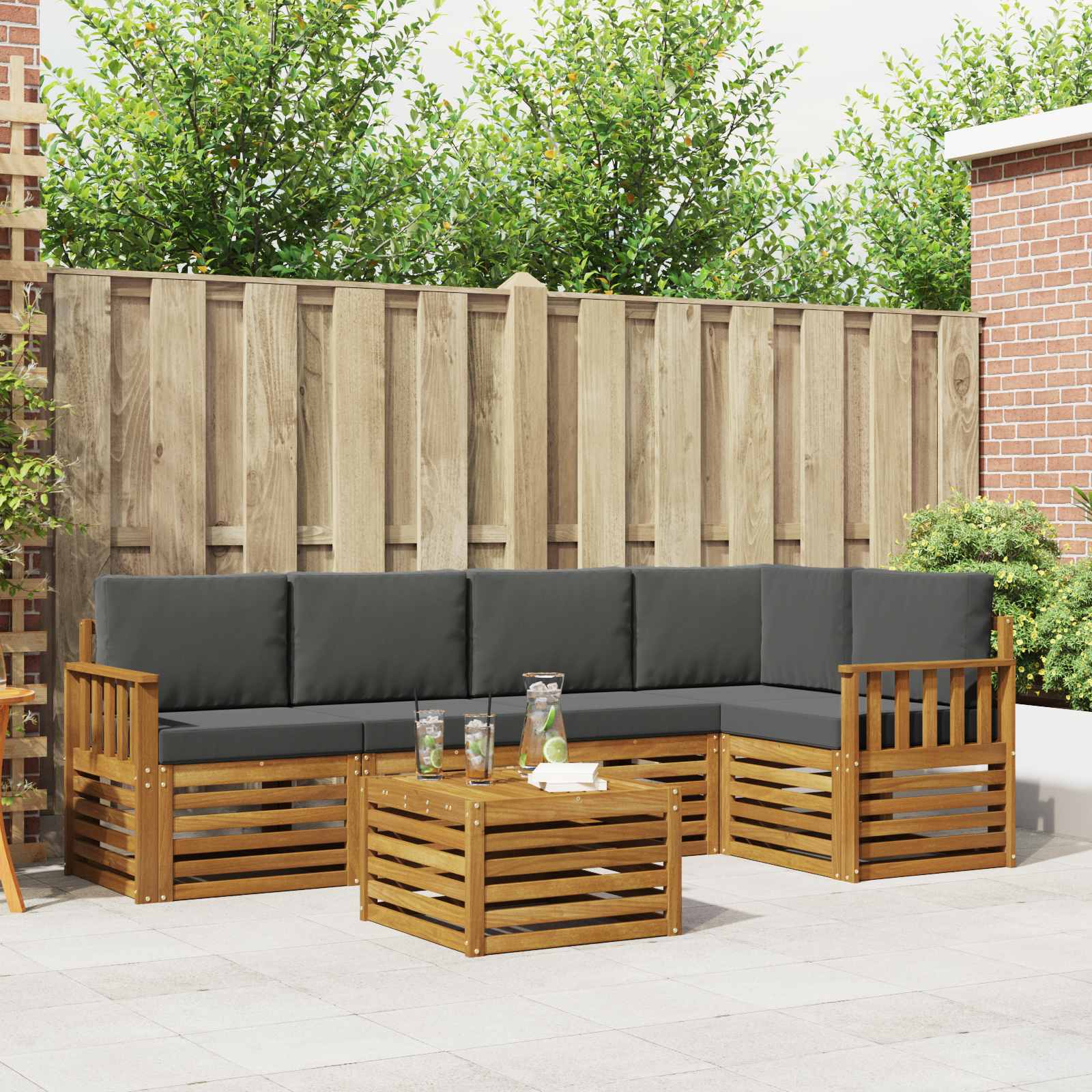 Souprava zahradního nábytku spojuje styl s funkčností a stává se tak úžasným středobodem pro každou zahradu či terasu. Její moderní design s čistými liniemi a přehlednými detaily dodává eleganci a podporuje venkovní odpočinek a setkání s rodinou a přáteli. Vyrobená z masivního akáciového dřeva, je to ideální volba pro ty, kteří hledají jak praktičnost, tak i styl. Odolné masivní akáciové dřevo: Vyrobené z masivního akáciového dřeva, toto venkovní nábytkové setkání je velmi trvanlivé a odolné vůči počasí. Robustní konstrukce zajišťuje stabilitu a atraktivní přírodní odstín se hodí do každé zahrady. Design odolný vůči povětrnostním vlivům: Povrch je ošetřen, aby vás chránil před sluncem, deštěm a jinými podmínkami. Lesklý povrch pomáhá uchovat jak vzhled, tak funkčnost, zajišťující dlouhou životnost pro vaši zahradu, terasu nebo dvorek. Součásti a design: Každý kus, včetně opěradel a sedadel, je navržen jak pro styl, tak pro pohodlí. Podpůrné prvky potrhují komfort, zatímco soudržný design vytváří harmonické uspořádání pro různé venkovní příležitosti. Pohodlí a všestrannost: Modulární design umožňuje flexibilní uspořádání vhodné pro různé prostory. Ideální pro odpočinek, společenské akce nebo klidné chvíle s knihou, tato souprava se snadno přizpůsobí vašim potřebám. Snadná údržba: Udržení krásy nábytku je jednoduché; stačí utřít vlhkým hadříkem. Pravidelná péče prodlužuje životnost a udržuje vzhled nábytku.