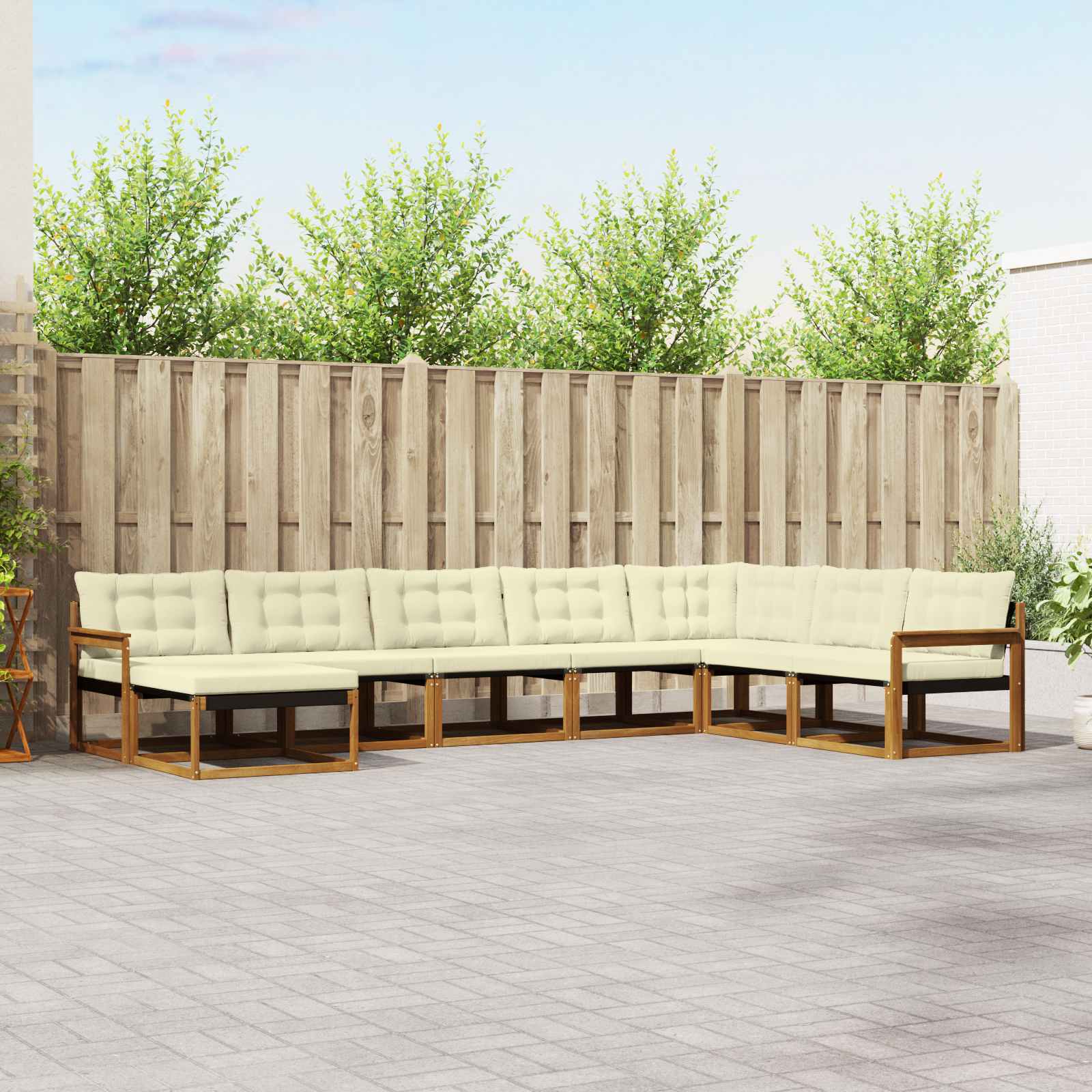 Tato moderní souprava pohovek je vyrobená z masivního akáciového dřeva, které spojuje pevnou estetiku s komfortem a stylem. Je navržena speciálně pro venkovní prostory jako zahrady a terasy. Její aktuální design dokonale ladí s přírodními dřevěnými texturami, čímž vytváří příjemnou atmosféru pro společenské setkání nebo relaxaci v přírodě. Prémiové materiály: Vyrobena z pevného masivního akáciového dřeva, tahle souprava ukazuje skvělou řemeslnou zručnost a vydrží venkovní prvky. Přírodní vlastnosti dřeva spolu s Textilen složkami zaručují dlouhou životnost a minimální údržbu, takže je ideální pro venkovní odpočinek. Zahrnuté komponenty: Její bytelné provedení je doplněno Textilen sedadly a opěrkami, které poskytují potřebnou texturu a oporu. Využijte kouzlo akáciového dřeva jako opěrek, které zvyšují design a komfort. Praktické venkovní polštáře s odnímatelnými potahy přidávají další vrstvu pohodlí pro každé sedadlo. Funkční vlastnosti: Navrženo tak, aby odolalo vyblednutí a bylo snadné na údržbu, ergonomický design opěráku zajišťuje pohodlí na delší venkovní setkání. Praktické opěrky poskytnou oporu a přispějí k příjemné atmosféře, která je synonymem nezapomenutelných venkovních chvil. Doporučené použití: Poté, co si vychutnáte odpočinkové chvíle na zahradě nebo slavnosti na terase, tato souprava pohovek je ideální pro osobní venkovní setkání. Její decentní elegance dotváří atmosféru a skvěle se přizpůsobí rodinným večerům nebo živým akcím. Údržba: Udržujte tuto nádhernou venkovní sadu podle jednoduché rutiny. Pravidelně ji otírejte vlhkým hadříkem, abyste odstranili nečistoty, a tím prodloužili životnost vašeho venkovního nábytku.