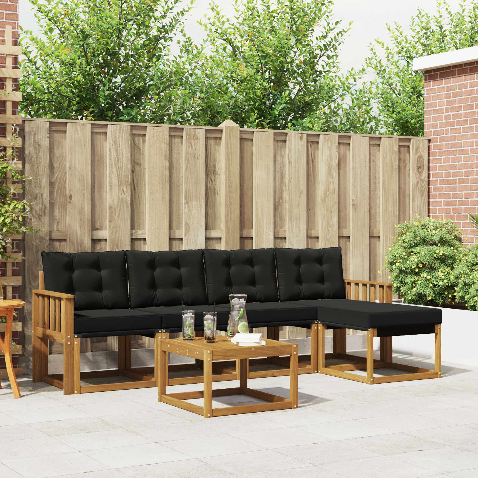 Venkovní pohovková souprava s polštářem 6 pcs Přirozená a černá