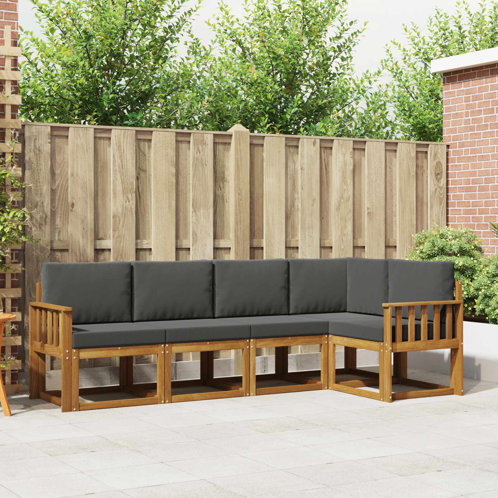 Tento elegantní sedací set je srdcem tvé zahrady, terasy nebo u bazénu. Jeho moderní design spojuje styl a funkčnost, teplé hnědé odstíny a lamelové opěradlo dodávají venkovním prostorům kousek luxusu. Ať už sedíš pod slunečníkem nebo na sluníčku, tento set ozdobí jakékoliv místo svým nadčasovým stylem a příjemným pojetím, což zve všechny k odpočinku a užívání si venkovního komfortu. Masivní akáciové dřevo: Tento set je vyrobený jen z prémiového masivního akáciového dřeva, takže vypadá skvěle a vydrží. Akáciové dřevo je známé svojí trvanlivostí, je odolné proti povětrnostním vlivům a opotřebení, takže ti bude dlouho sloužit. Přirozený lesk dřeva mu dodává elegantní vzhled a není náročné na údržbu. Lamelový design opěradla: S elegantním lamelovým opěradlem tenhle sedací set spojuje hezký vzhled s funkcí. Tento design napomáhá cirkulaci vzduchu a dělá z celého uspořádání příjemné místo na sezení. Ergonomické opěradlo zaručuje pohodlí, zatímco skvělý vzhled zlepší atmosféru ve tvých venkovních prostorech, takže tvoje terasa nebo zahrada se stane příjemným místem pro relaxaci nebo party. Pevný lamelový rám: Silný a robustní rám poskytuje oporu, na kterou se můžeš spolehnout. Tento design je perfektní pro venkovní použití, kde potřebuješ stabilitu. Rám doplňuje design pohovky a krásně ladí s masivním akáciovým dřevem pro jednotný styl, který ukazuje na kvalitu a hezký vzhled. Odolnost vůči povětrnostním vlivům: Navržený tak, aby přežil různá počasí. Od slunečných dnů u bazénu k větrným večerům na zahradě, materiály a design tě chrání před nepřízní počasí, takže set zůstane pohodlný a atraktivní po celý rok. Modulární uspořádání: Můžeš si uspořádat tenhle sedací set podle vlastního vkusu a příležitosti. Ať už chceš vytvořit útulné sezení, nebo místo pro odpočinek, tohle rozložení ti dává svobodu designu, jak ji potřebuješ. Tato flexibilita ti umožňuje měnit styl a funkčnost podle nálady.